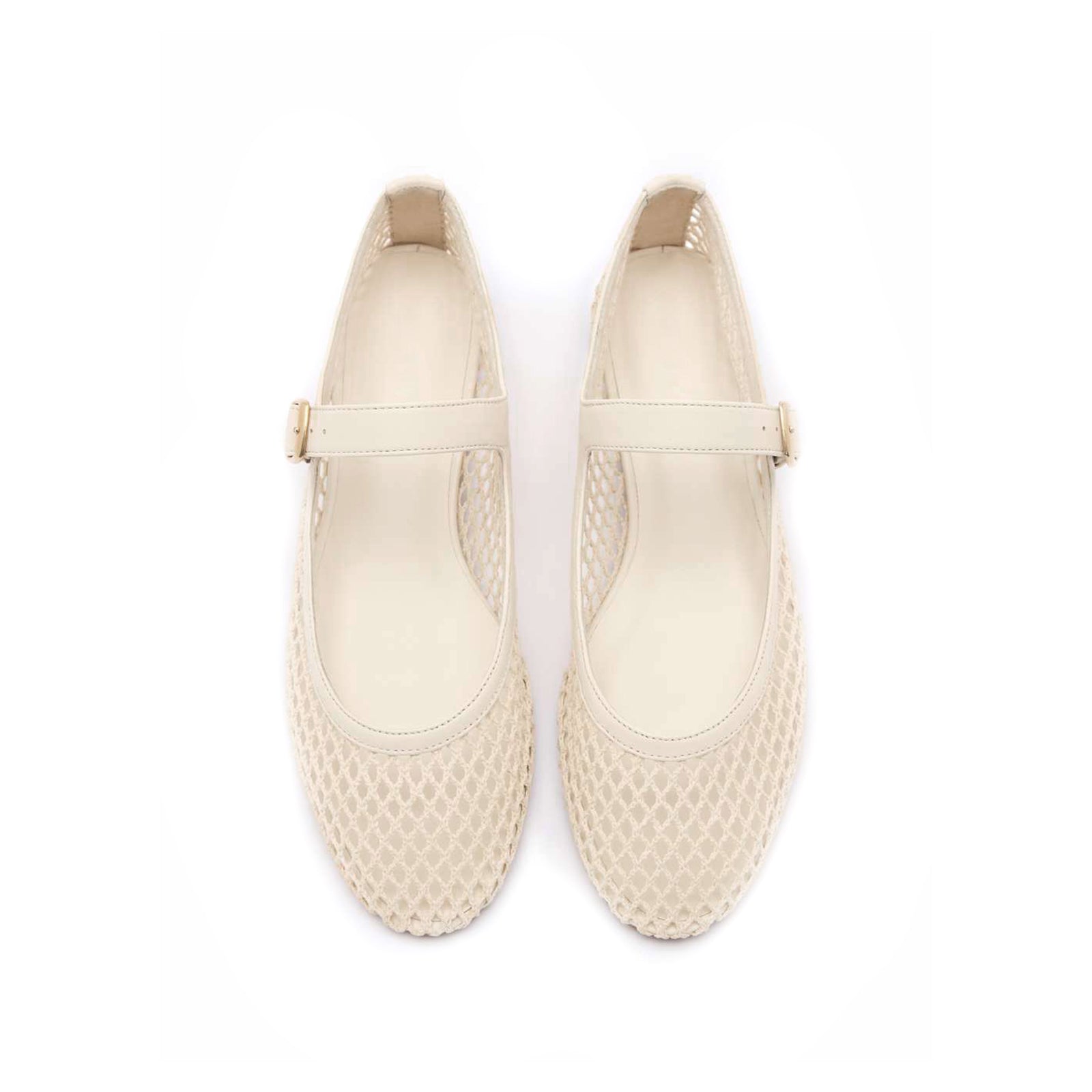 Ivory Mesh Round-Toe Bridge Strap Slip-On Flats.