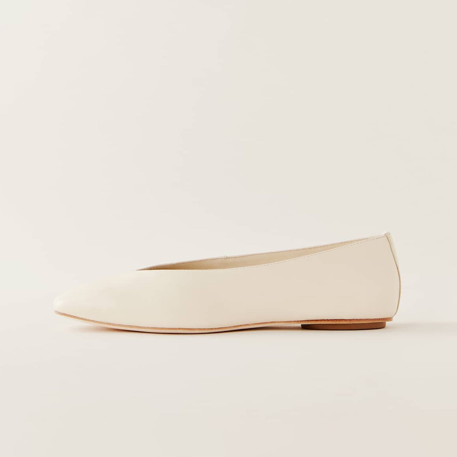Ivory Square-Toe Classic Ballet Slip-On Flats.