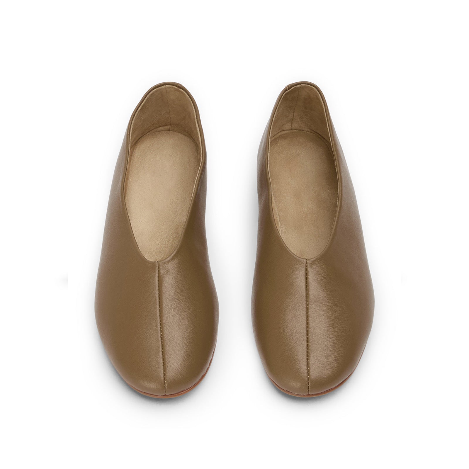 Latte Round-Toe Sleek Slip-On Ballet Flats.