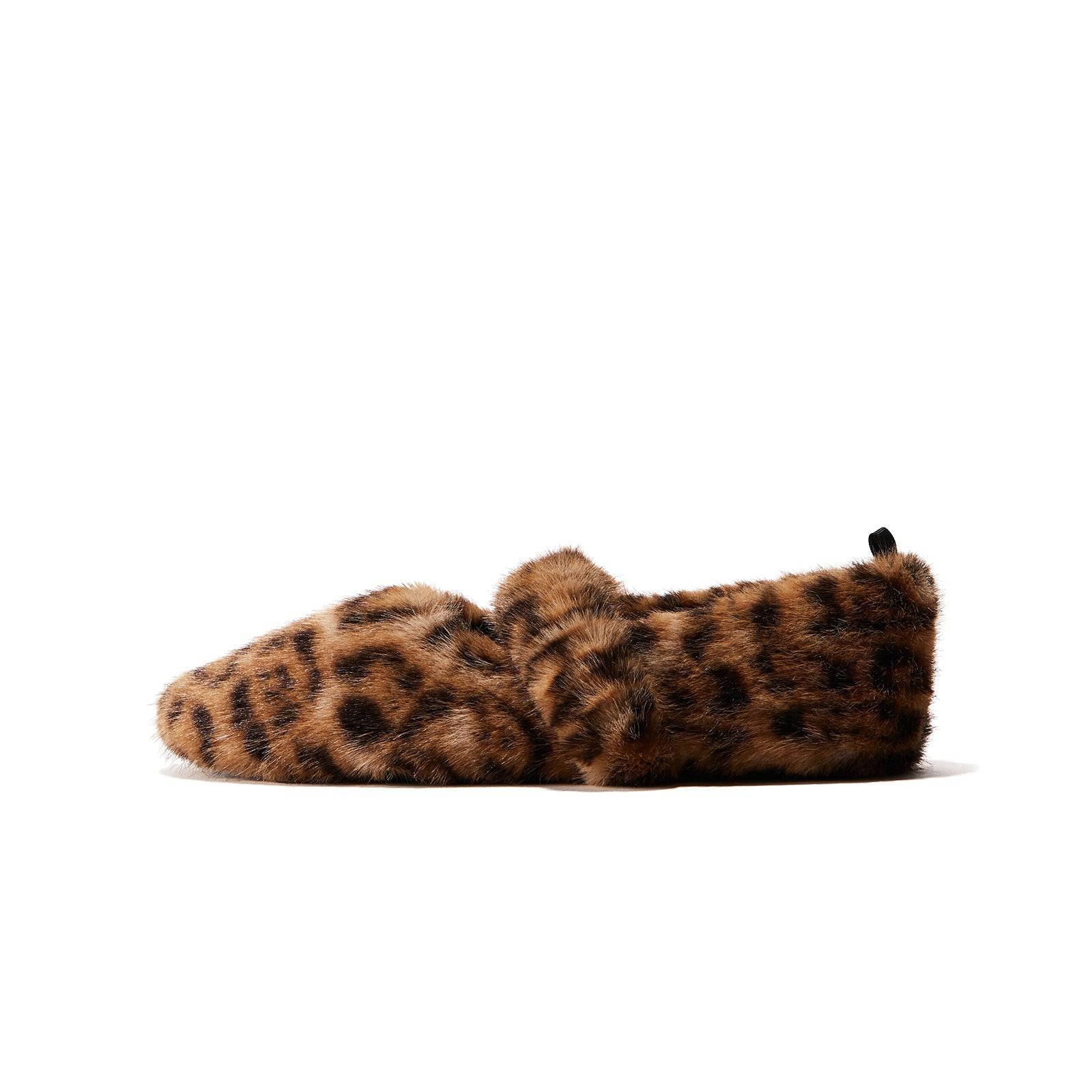 Leopard Plush Round-Toe Bridge Strap Flats.