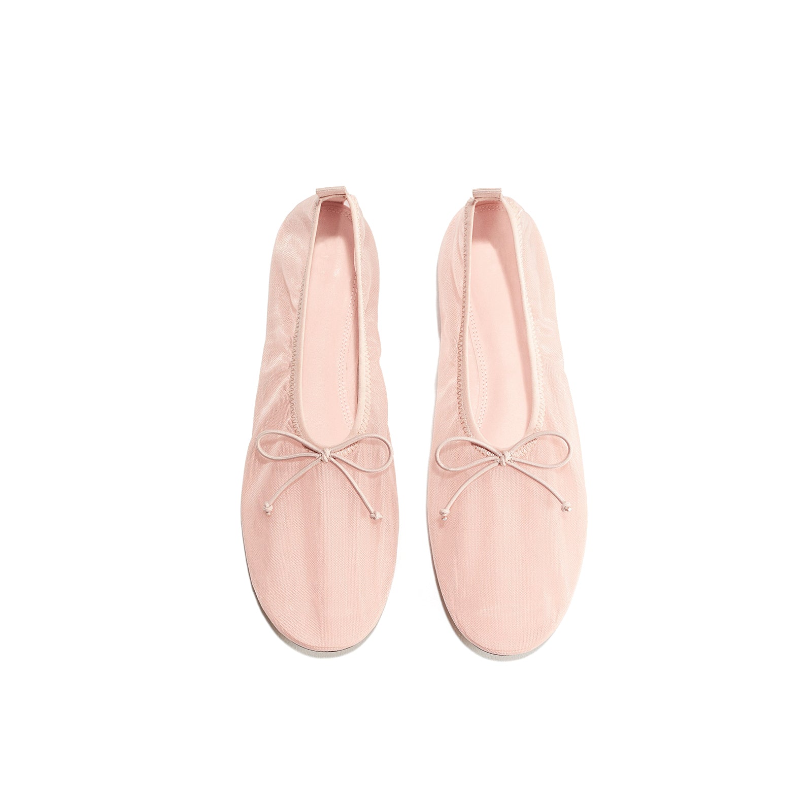 Light Pink Mesh Round-Toe Classic Front Bow Ballet Flats.
