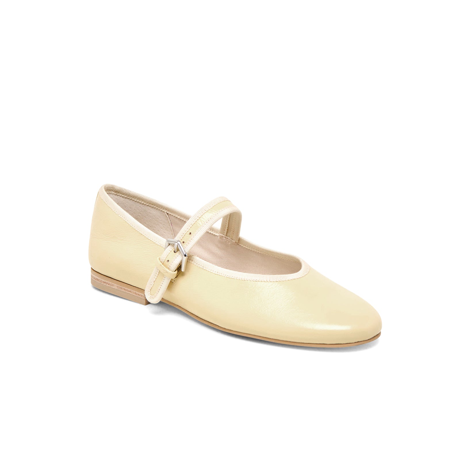 Light Yellow Vegan Leather Round-Toe Bridge Strap Ballet Flats.