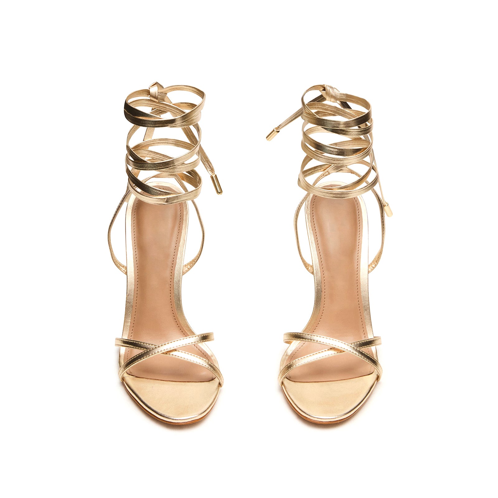 Metallic Champagne Round-Toe Ankle Strappy High Heels.