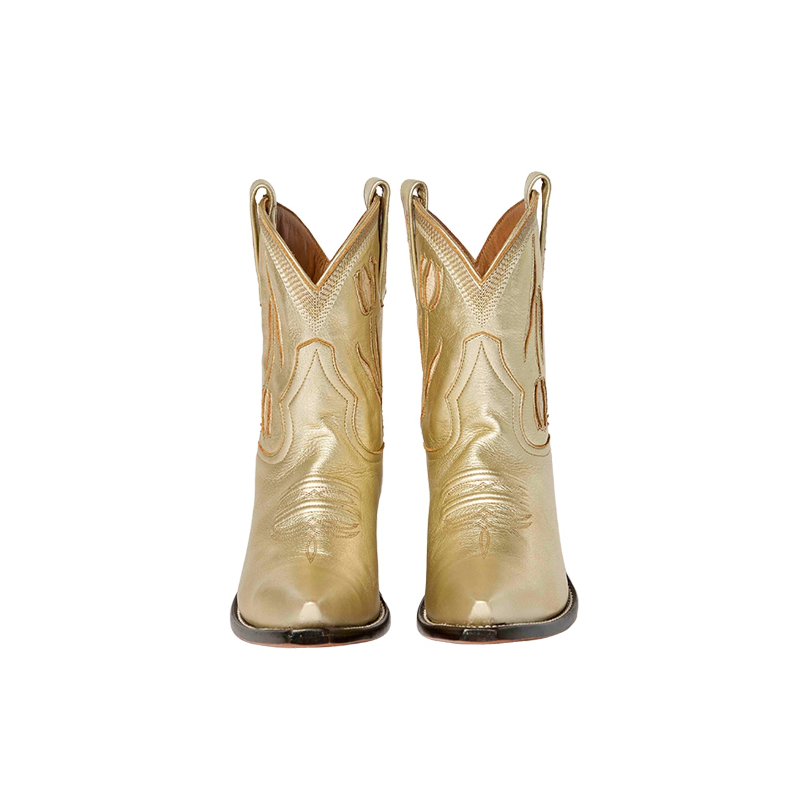 Metallic Gold Snip-Toe Tulip Inlay Ankle Cowgirl Boots.