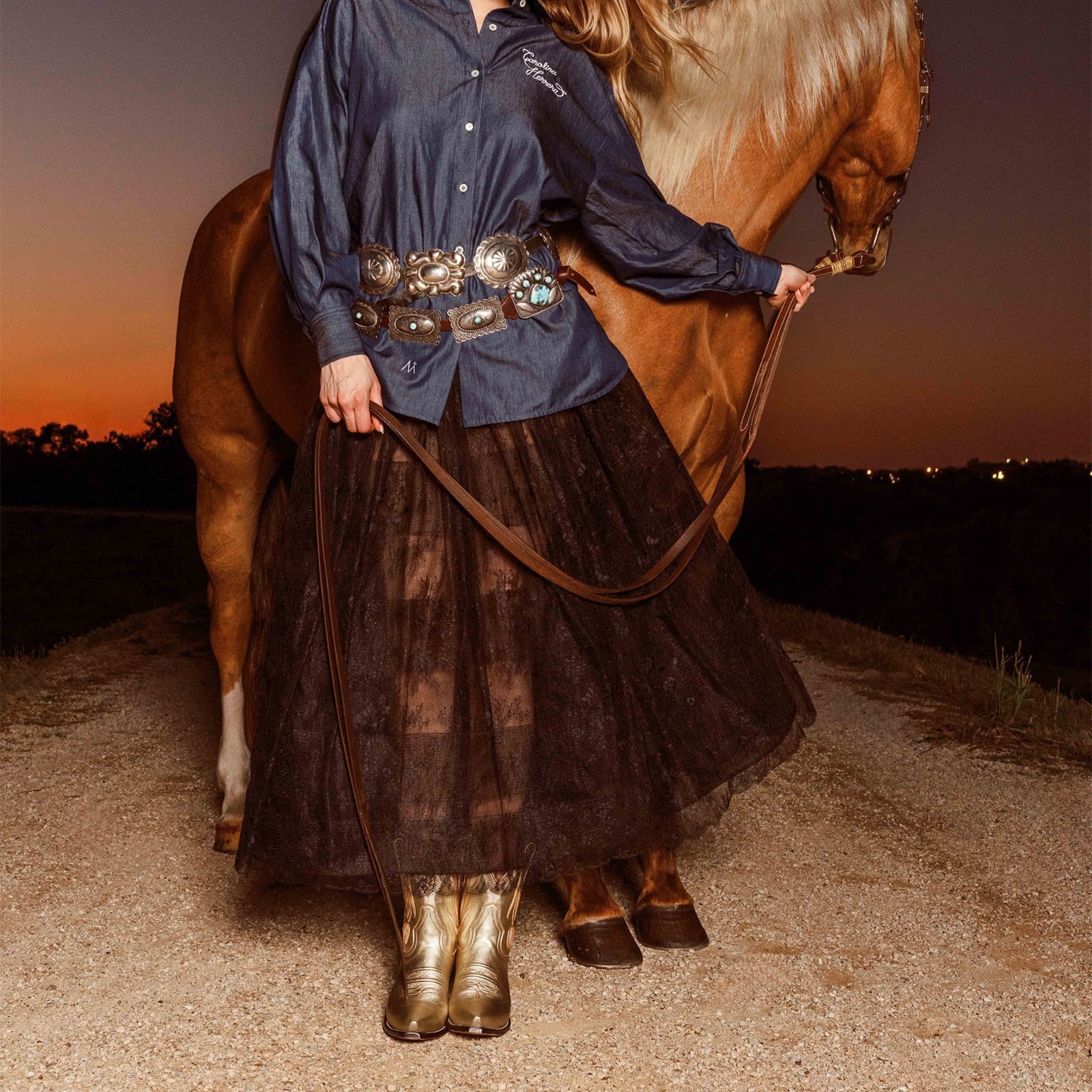 - Shimmering metallic gold finish brings bold, radiant Western flair.
