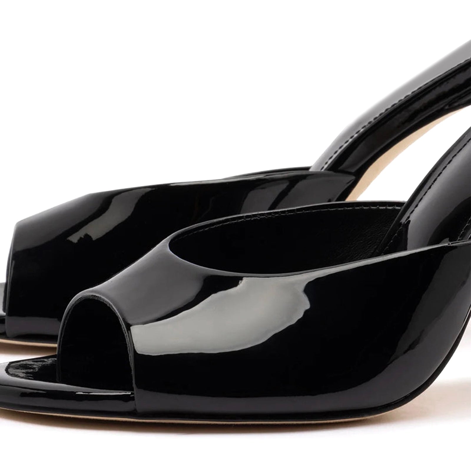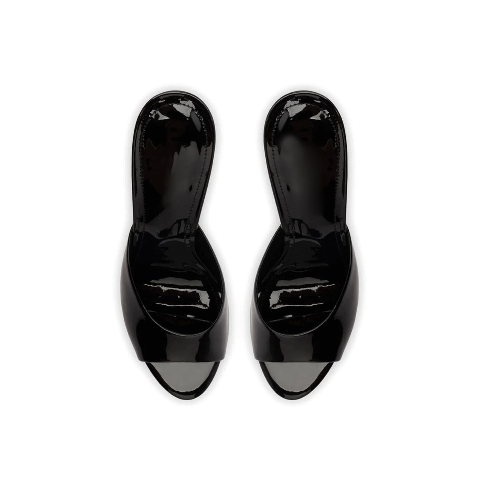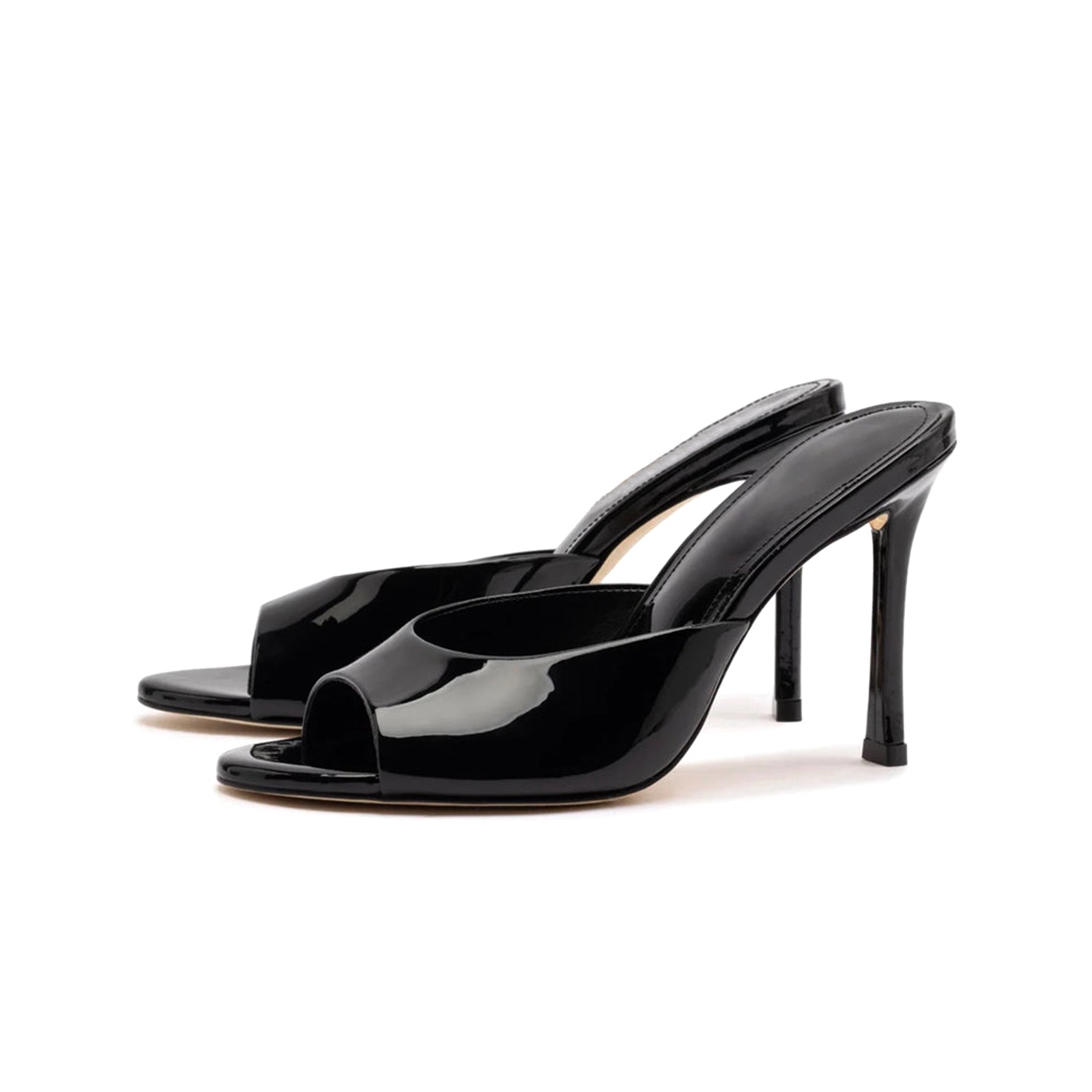 Patent Black Round-Toe Sleek Backless High Stiletto Heels.