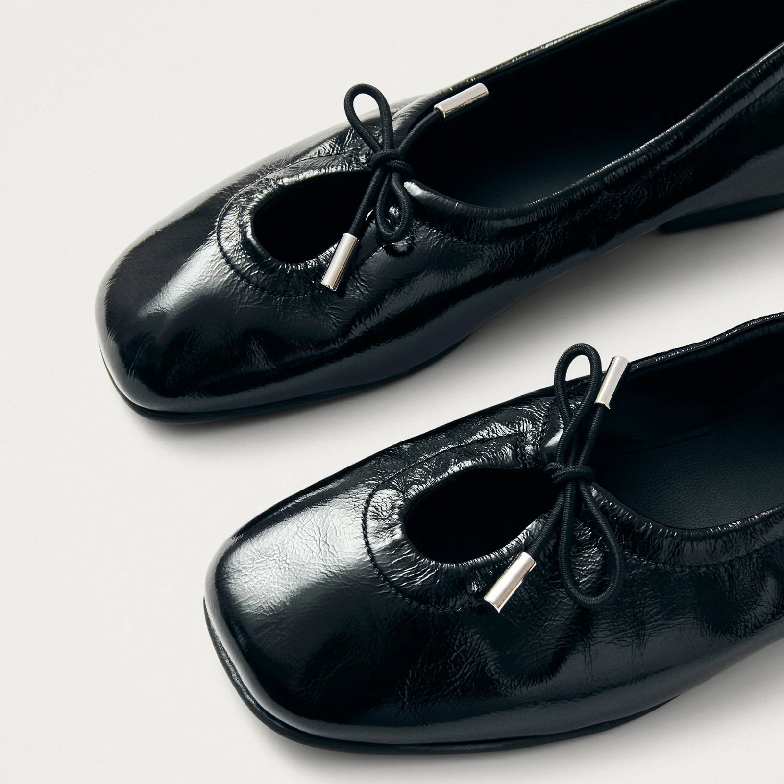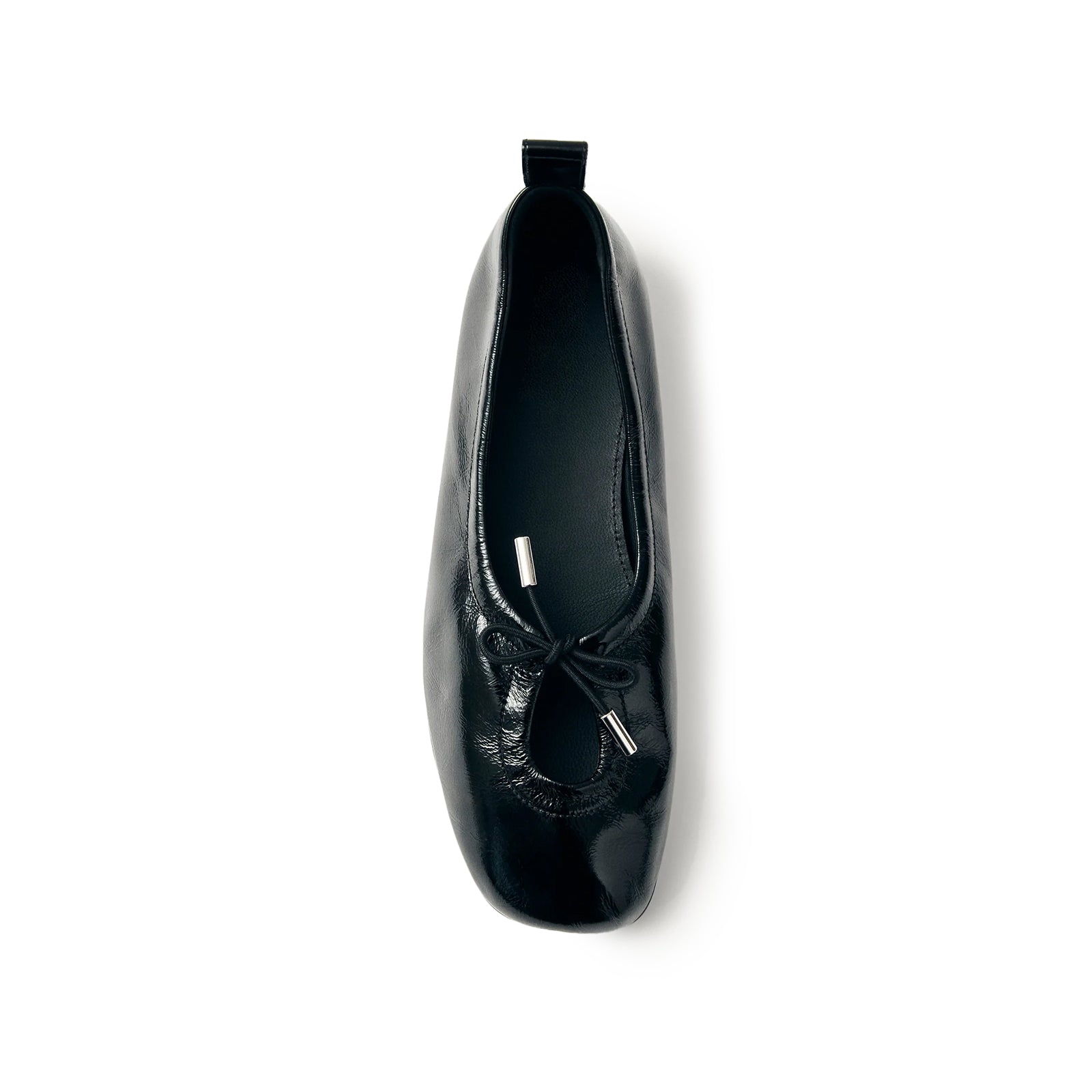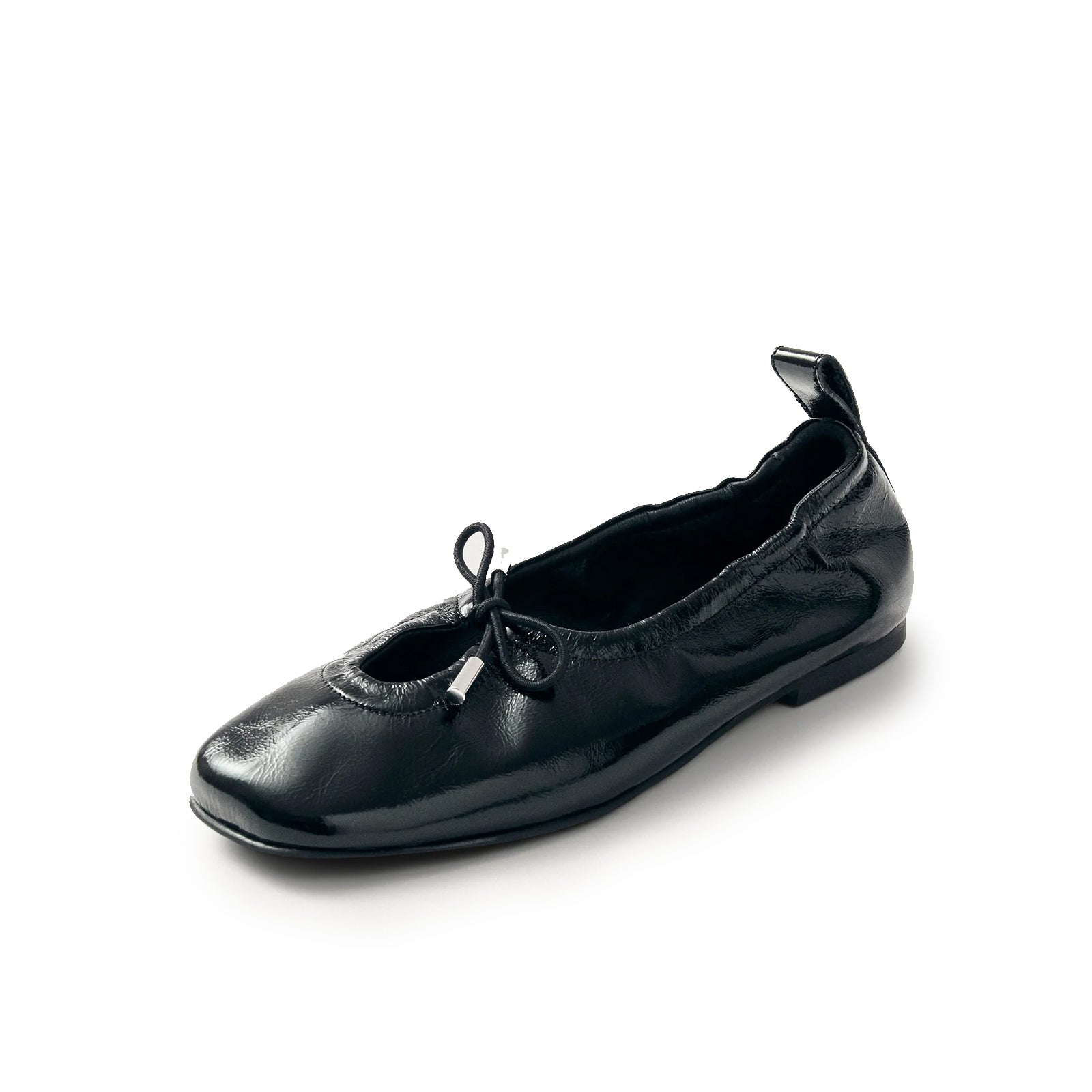 Patent Black Square-Toe Stretchy Ballet Flats.