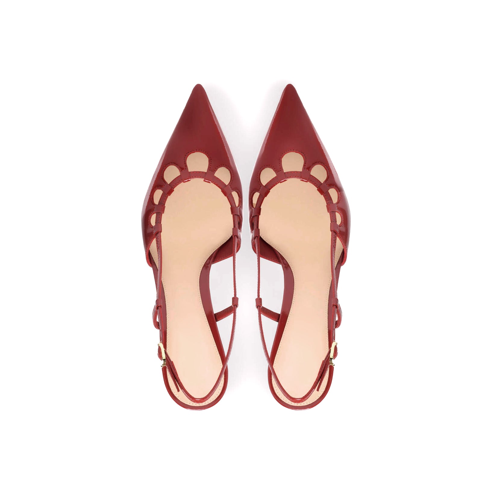 Patent Red Pointed-Toe Buckle Slingback Kitten Heels.