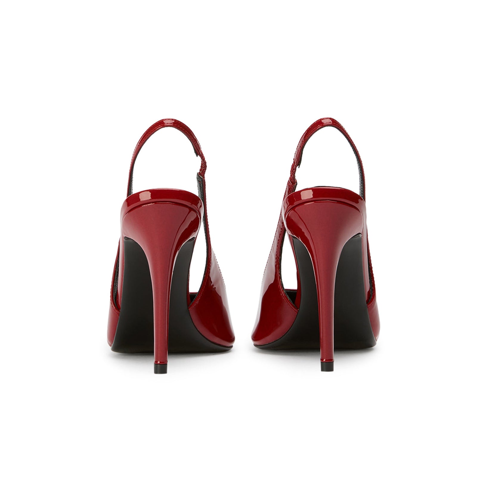 Patent Red Pointed-Toe Classic Slip-On Slingback High Heels.