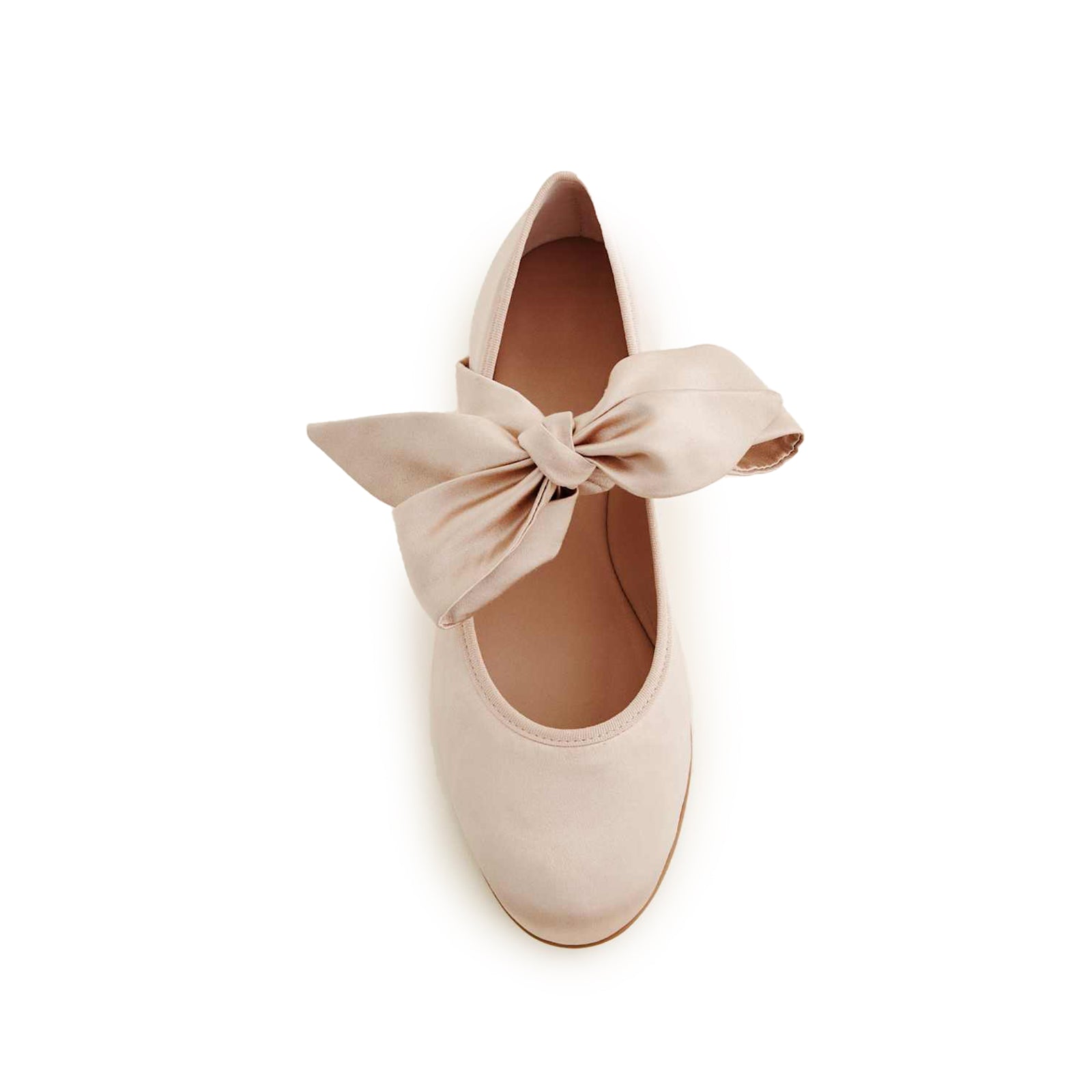 Pink Satin Round-Toe Bridge Bow Strap Ballet Flats.