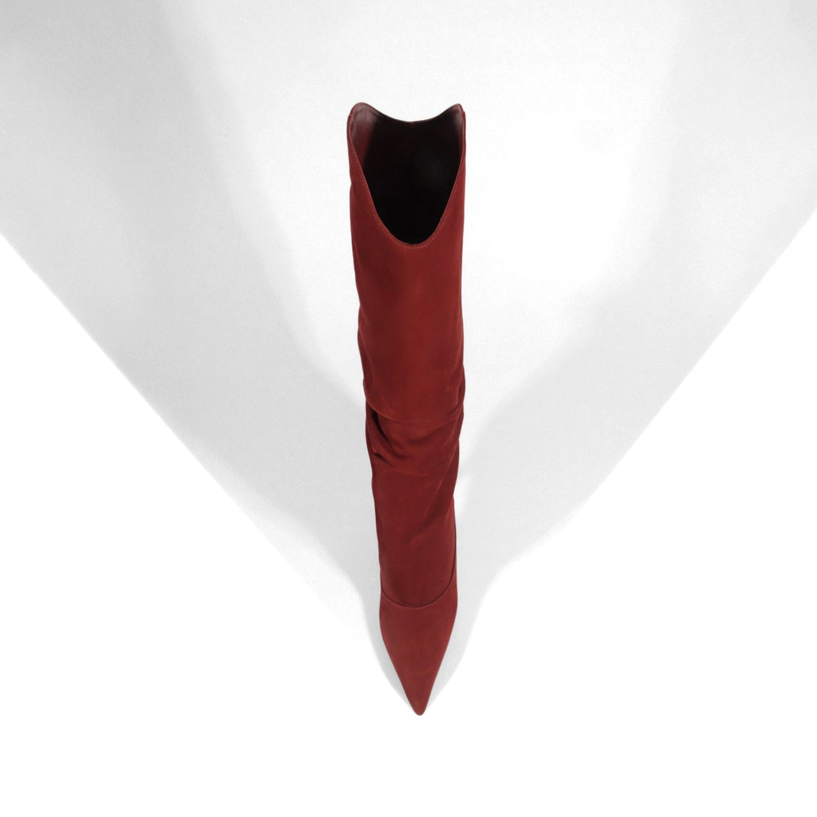 Red Brown Faux Suede Pointed-Toe Slouch Wide Calf Knee High Stiletto Boots.