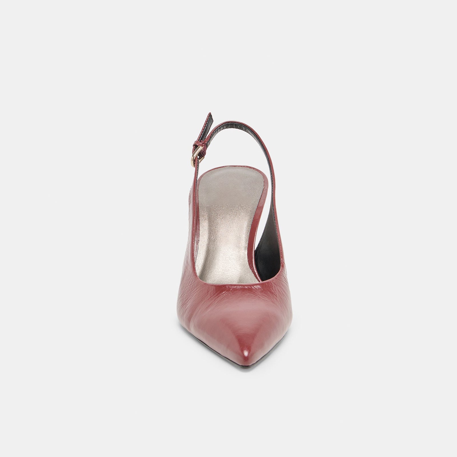 Red Classic Pointed-Toe Buckle Slingback Kitten Heels.