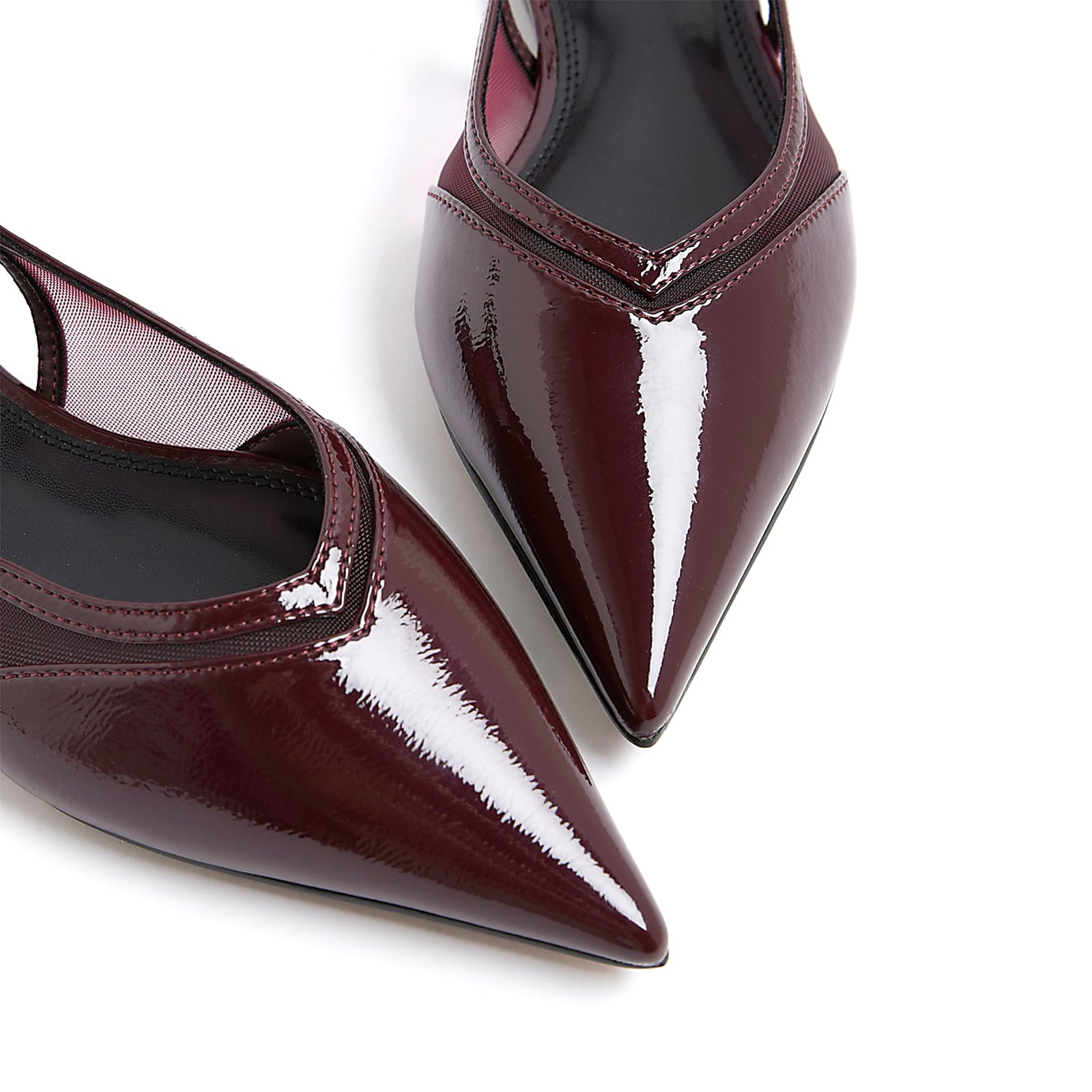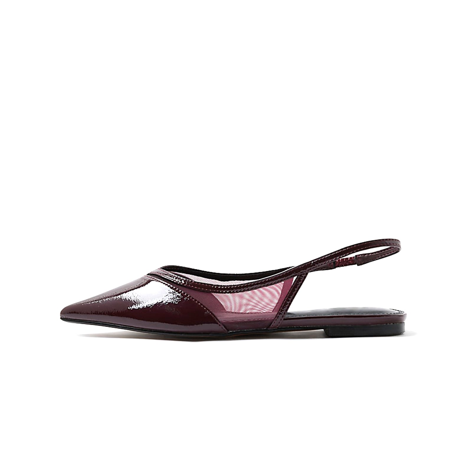 Red Contrast Patent And Mesh Pointed-Toe Slingback Flats.