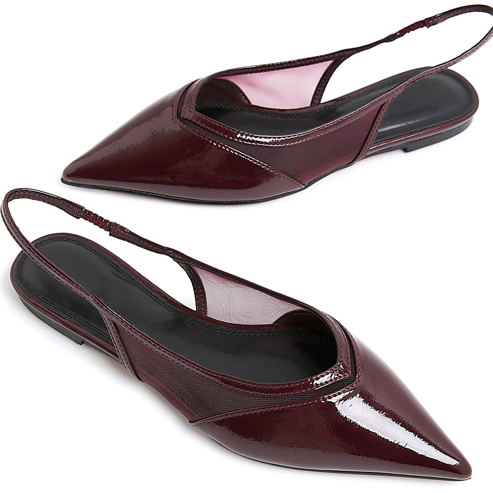 Chic, airy, and eye-catching — these red patent and mesh slingback flats redefine everyday elegance.