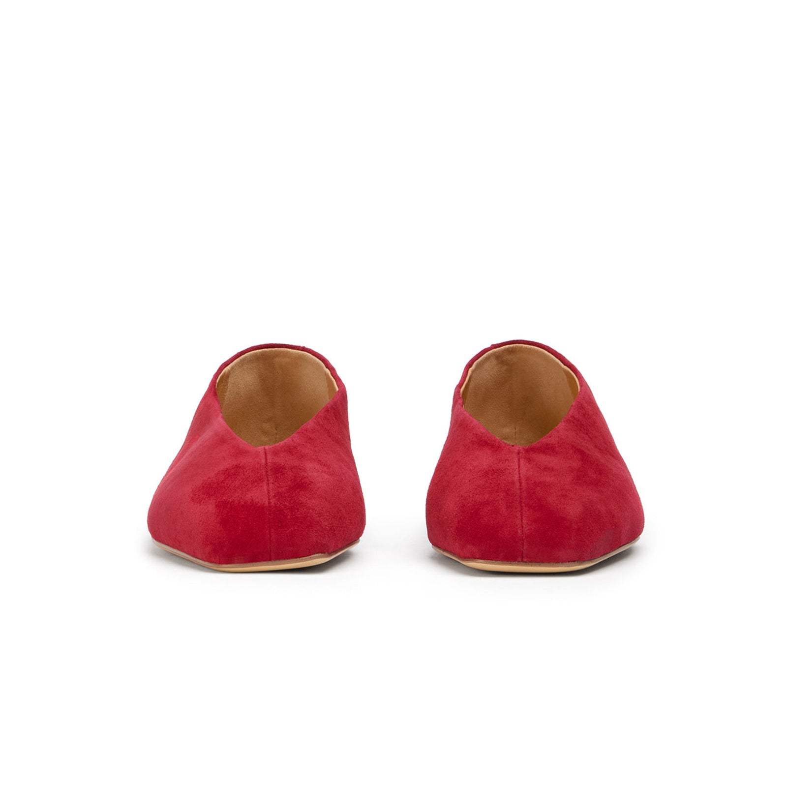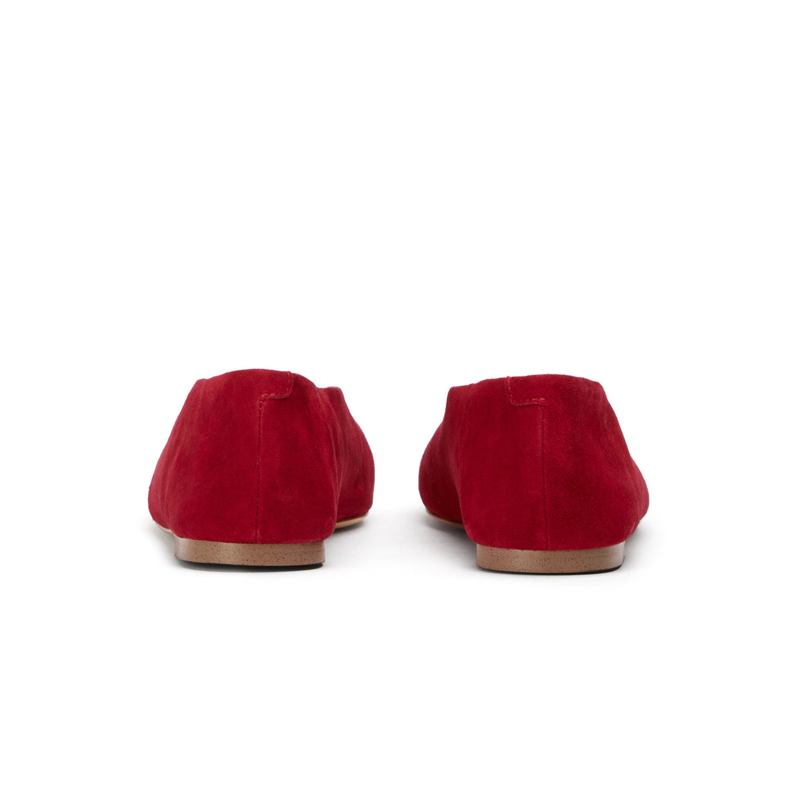 Red Faux Suede Chic Square-Toe Slip-On Flats.