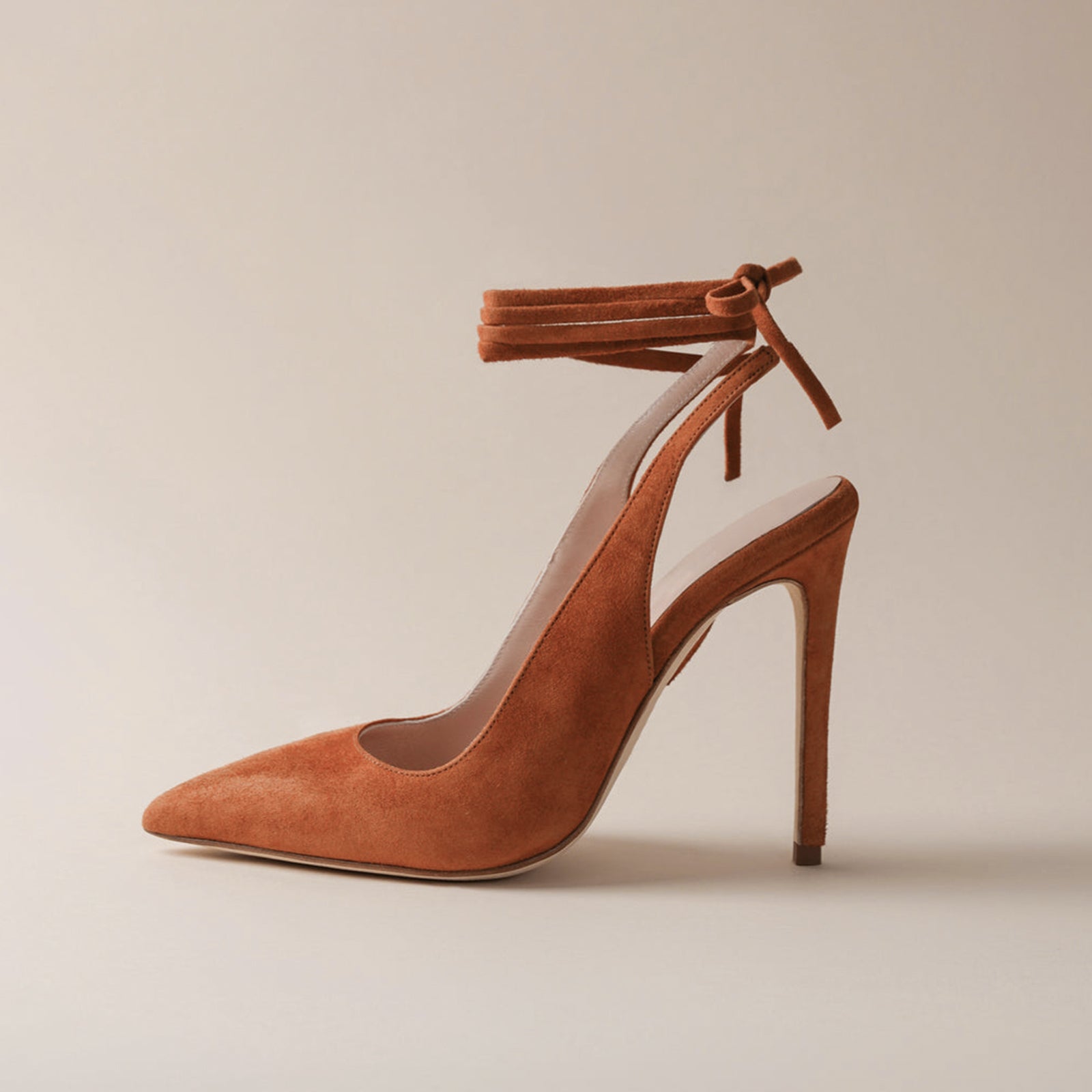 Red Faux Suede Pointed-Toe Slingback Ankle Laces High Heels