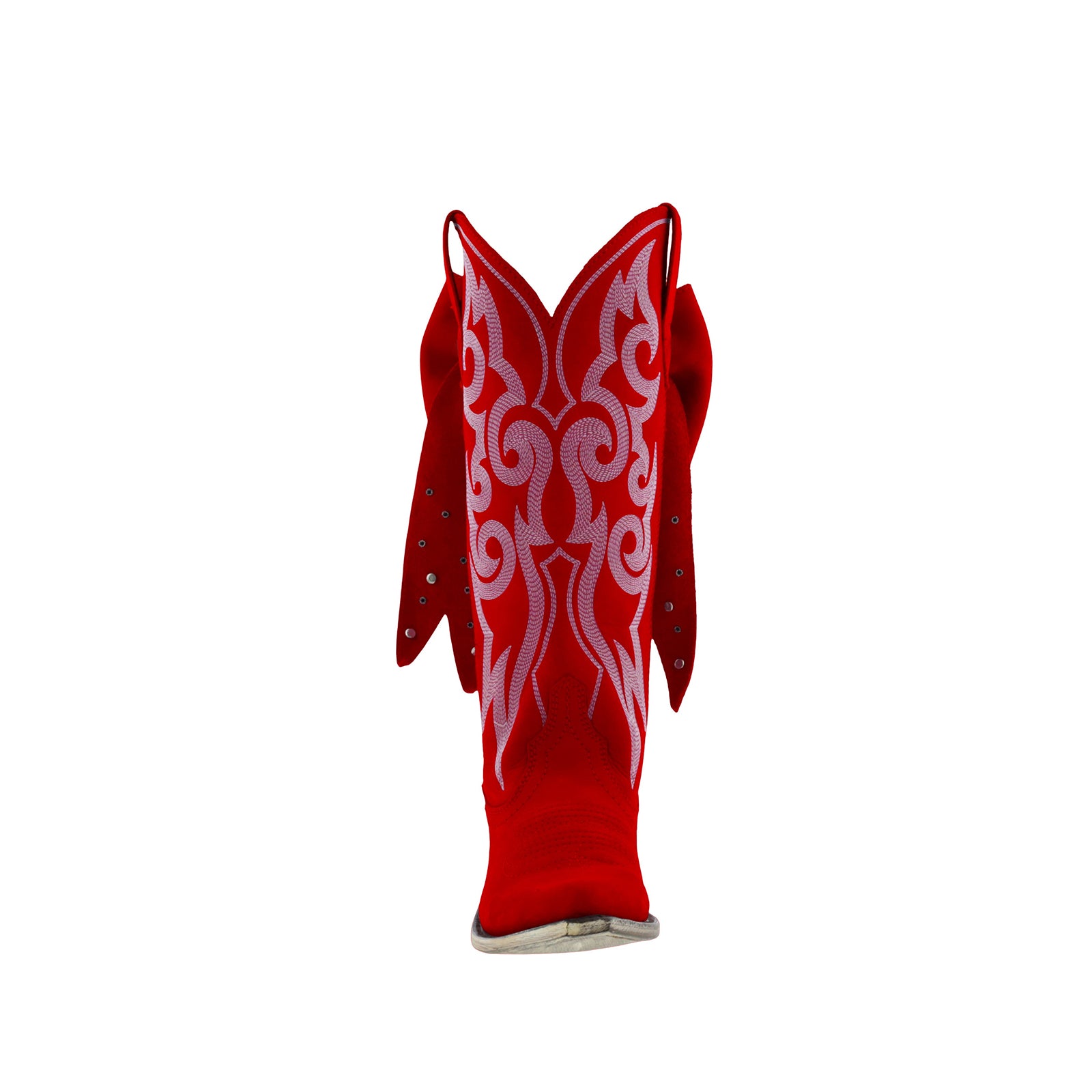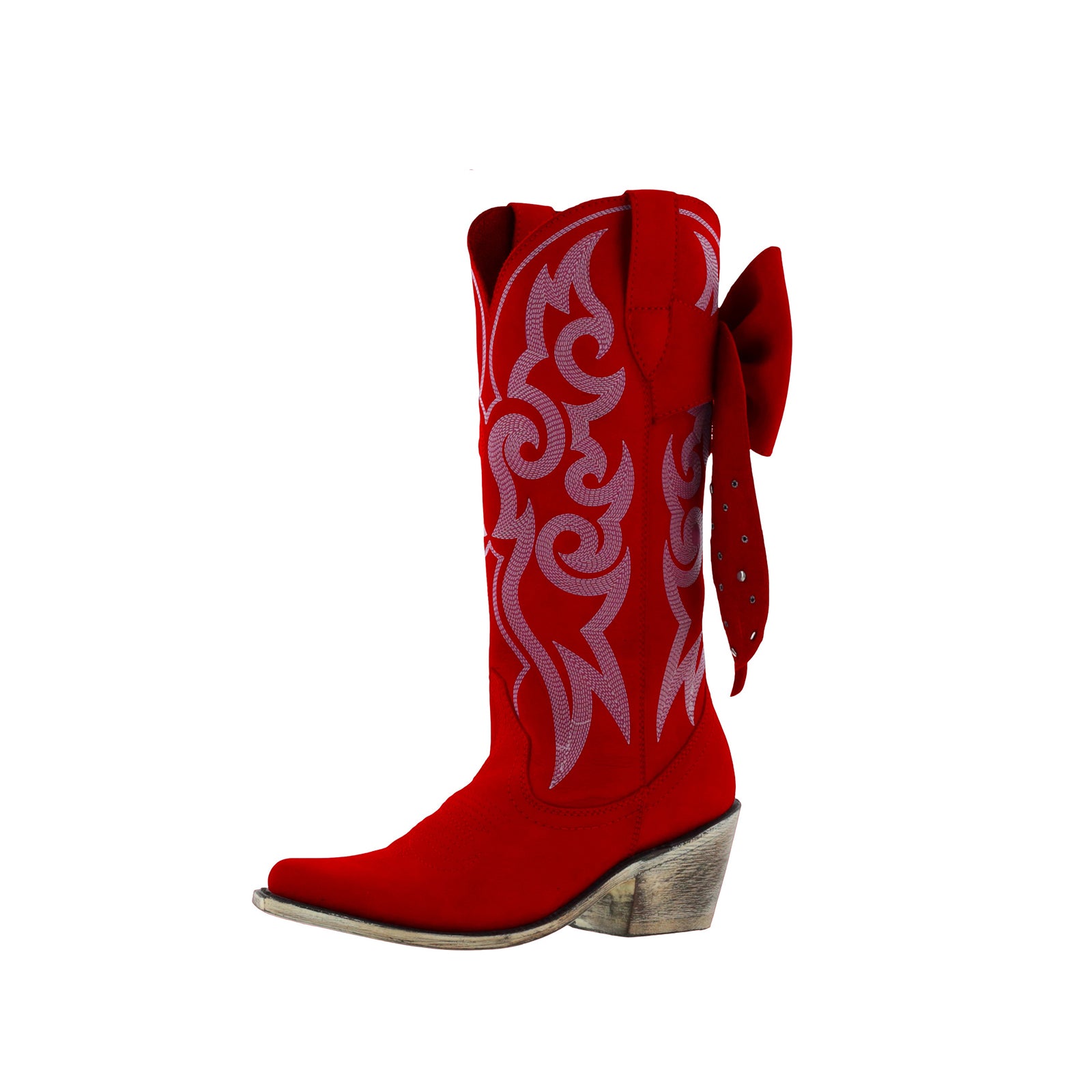 Striking and feminine, these boots combine bold tones, intricate embroidery, and a studded bow detail—making them a statement piece with a perfect balance of Western charm and modern flair.