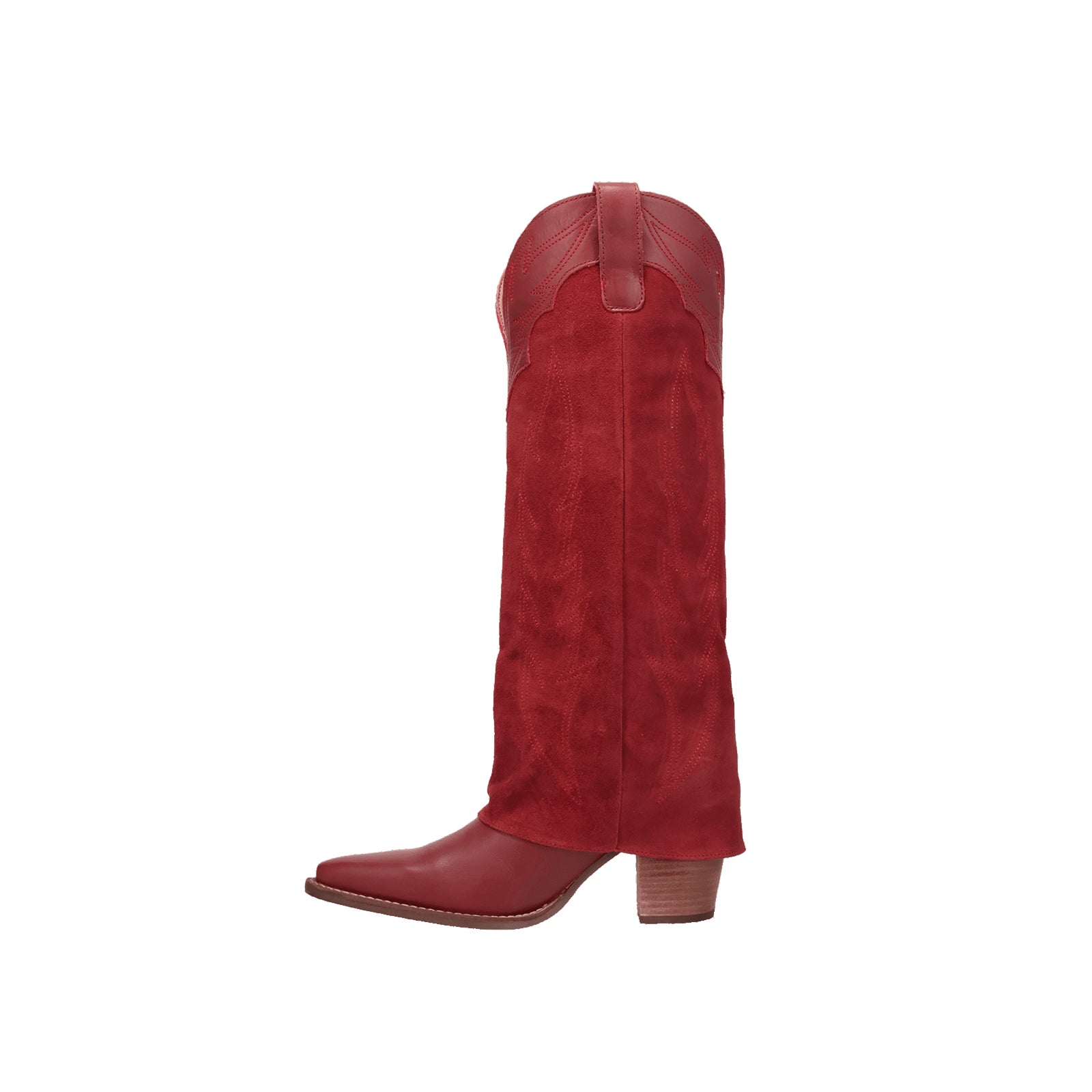 Refined and versatile, these boots combine soft faux suede texture with graceful embroidery and a fold-over silhouette — perfect for adding modern charm to classic Western style.