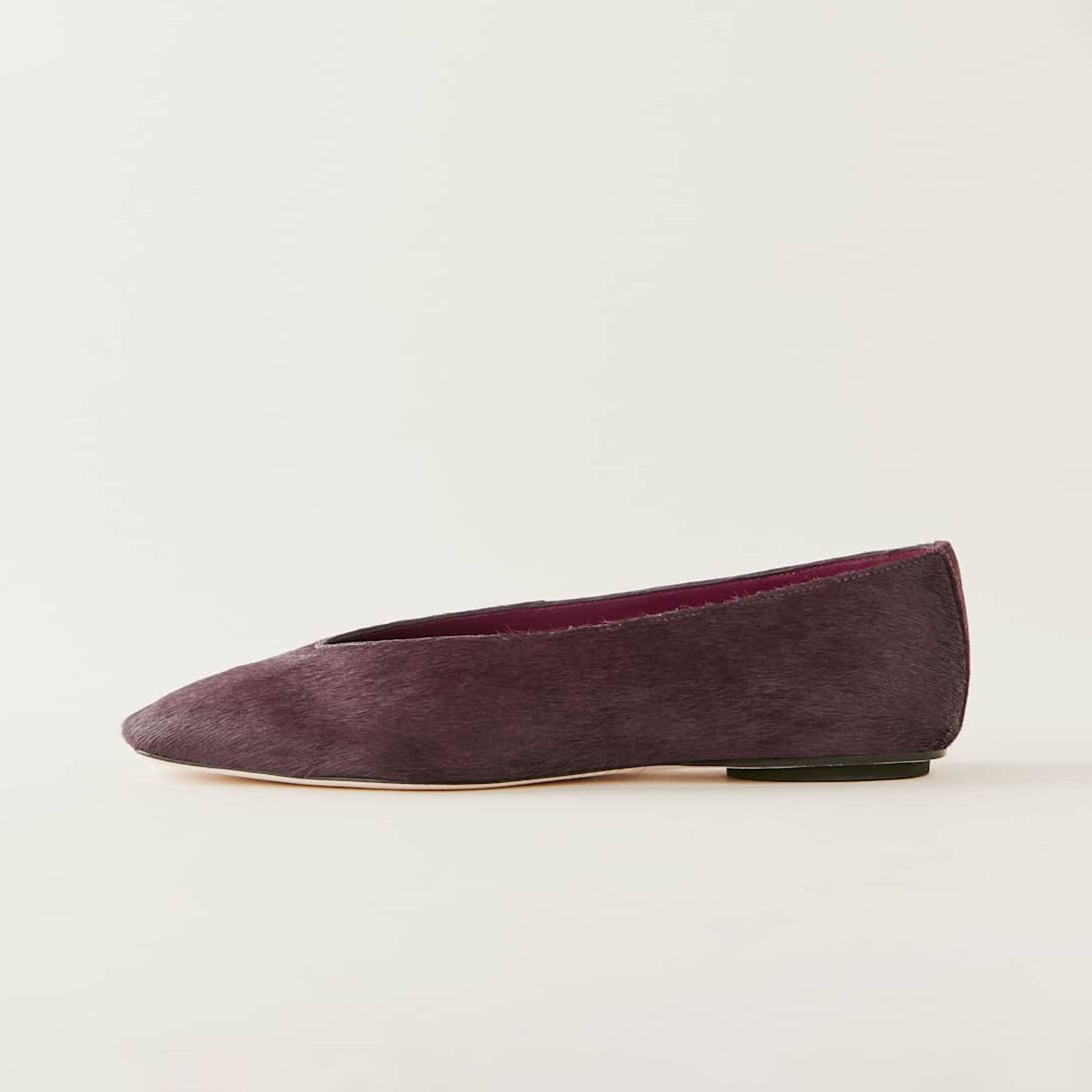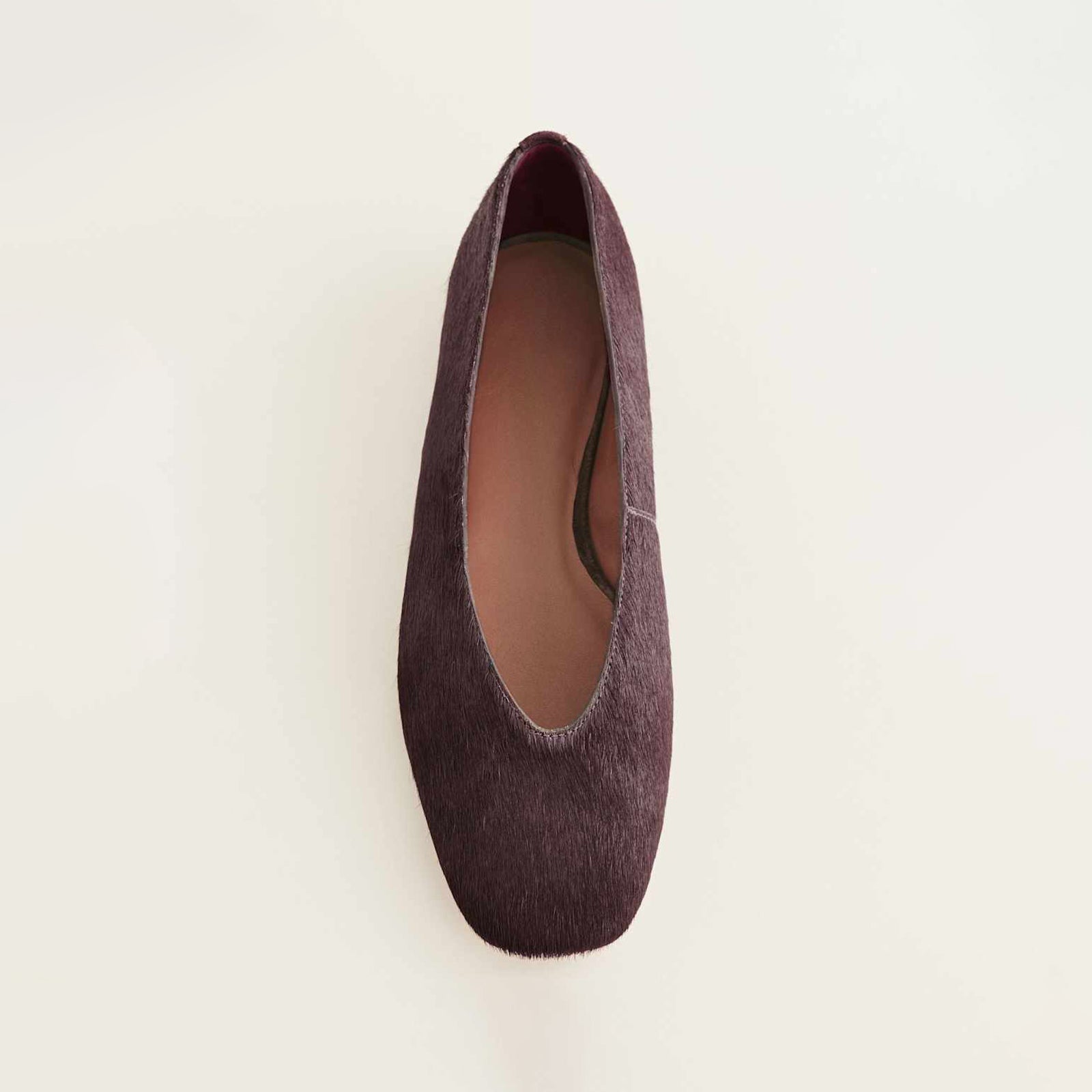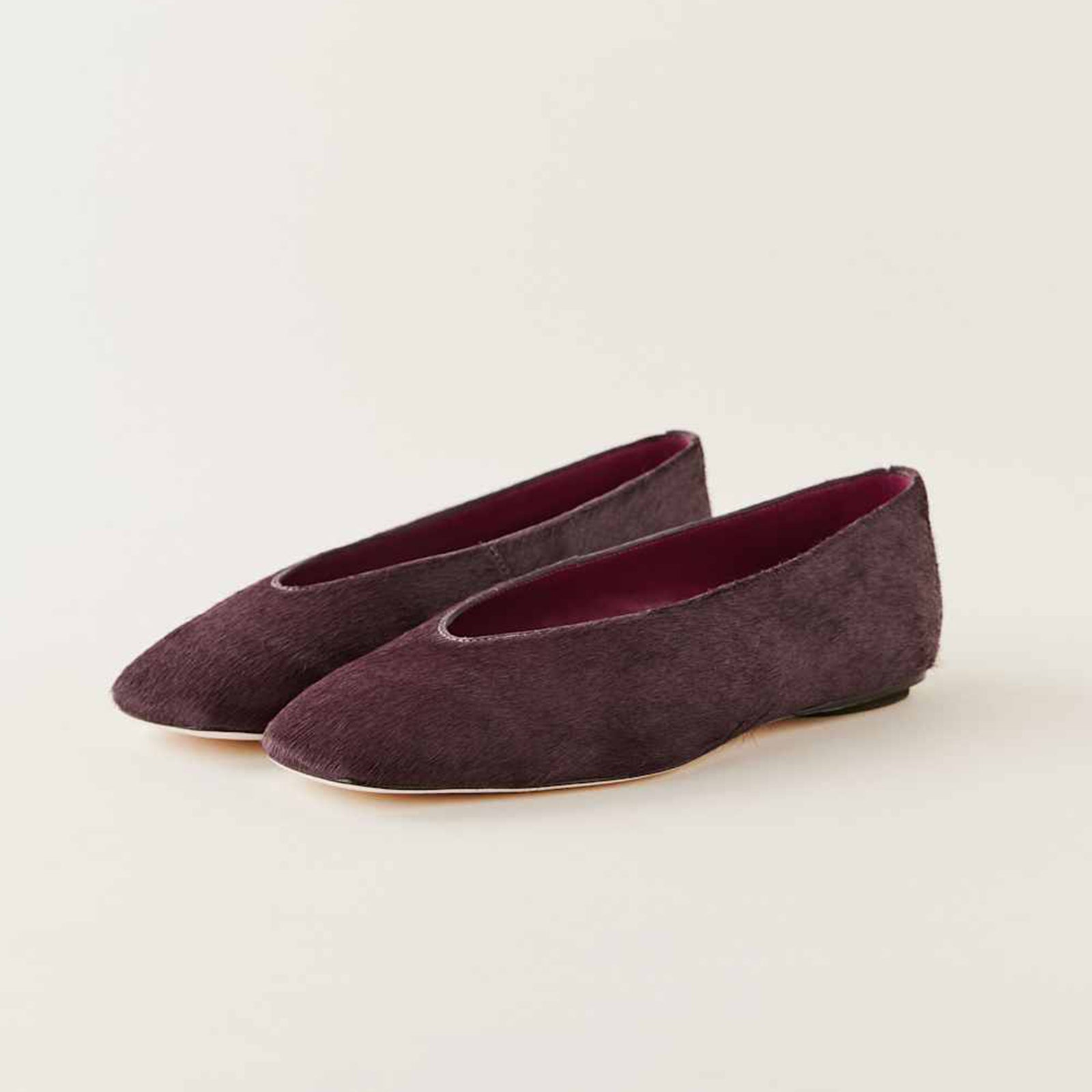 Ruby Red Print Pony Hair Square-Toe Classic Ballet Slip-On Flats.