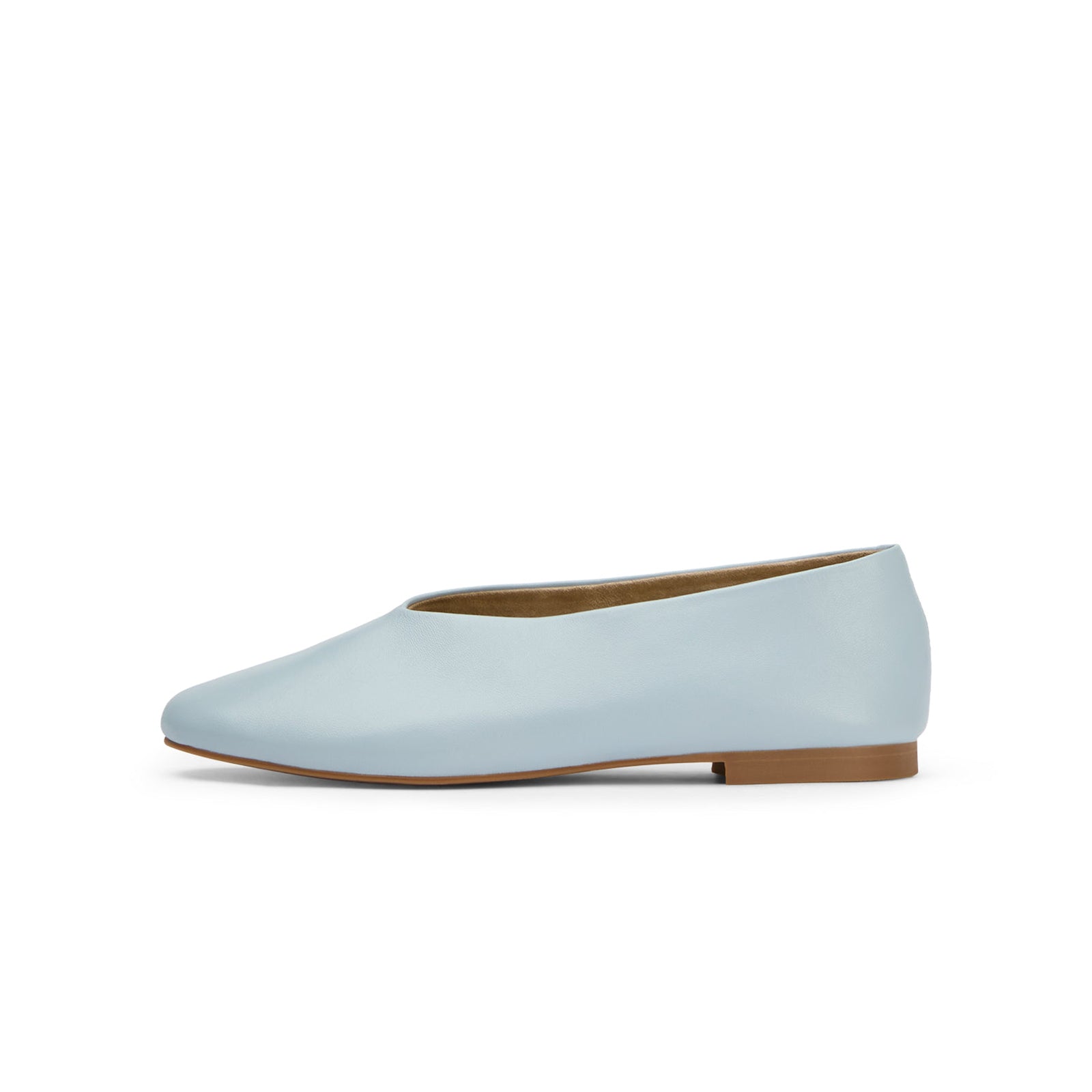 Sky Blue Round-Toe Sleek Slip-On Ballet Flats.