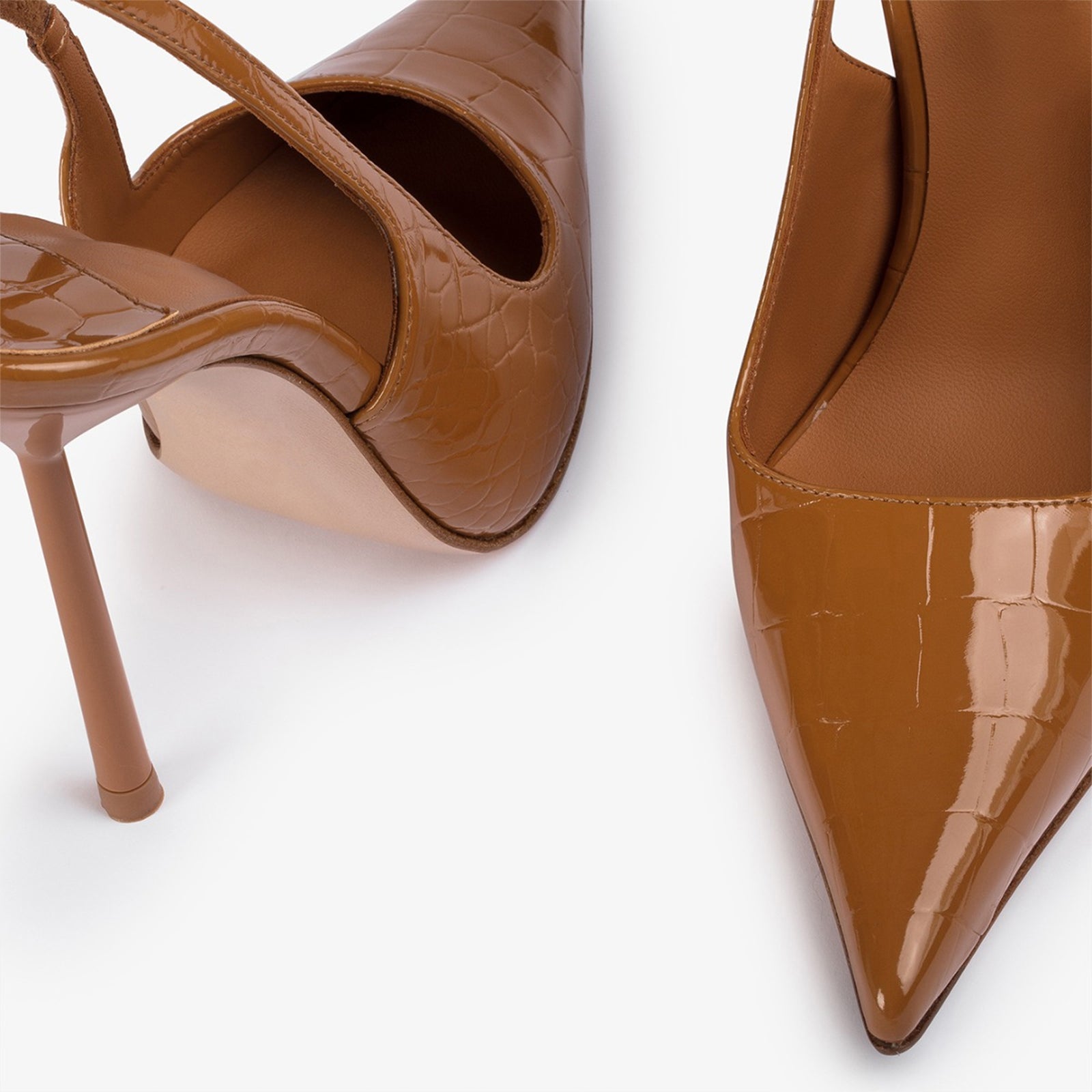 Stone-Print Patent Brown Pointed-Toe Sleek Slingback High Heels