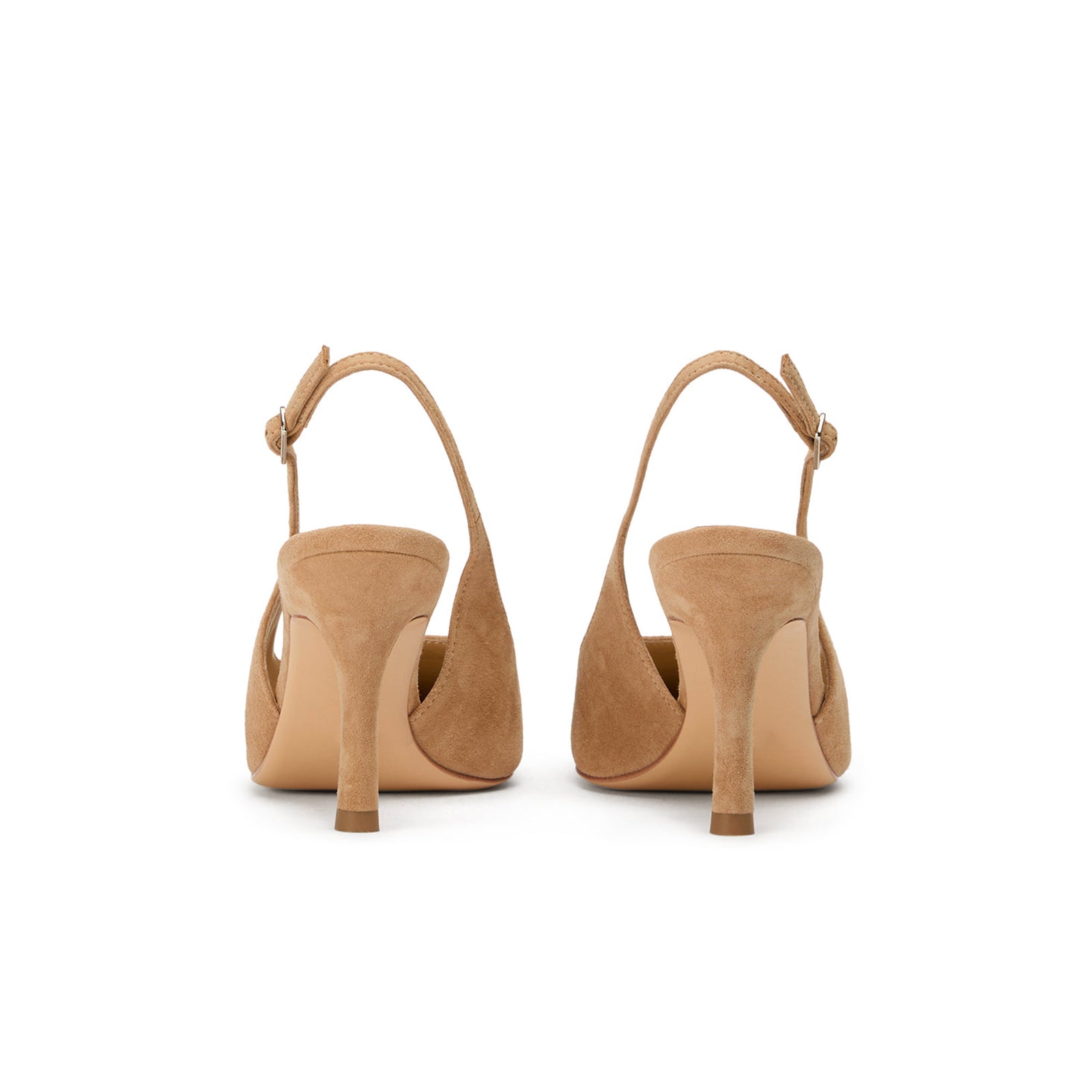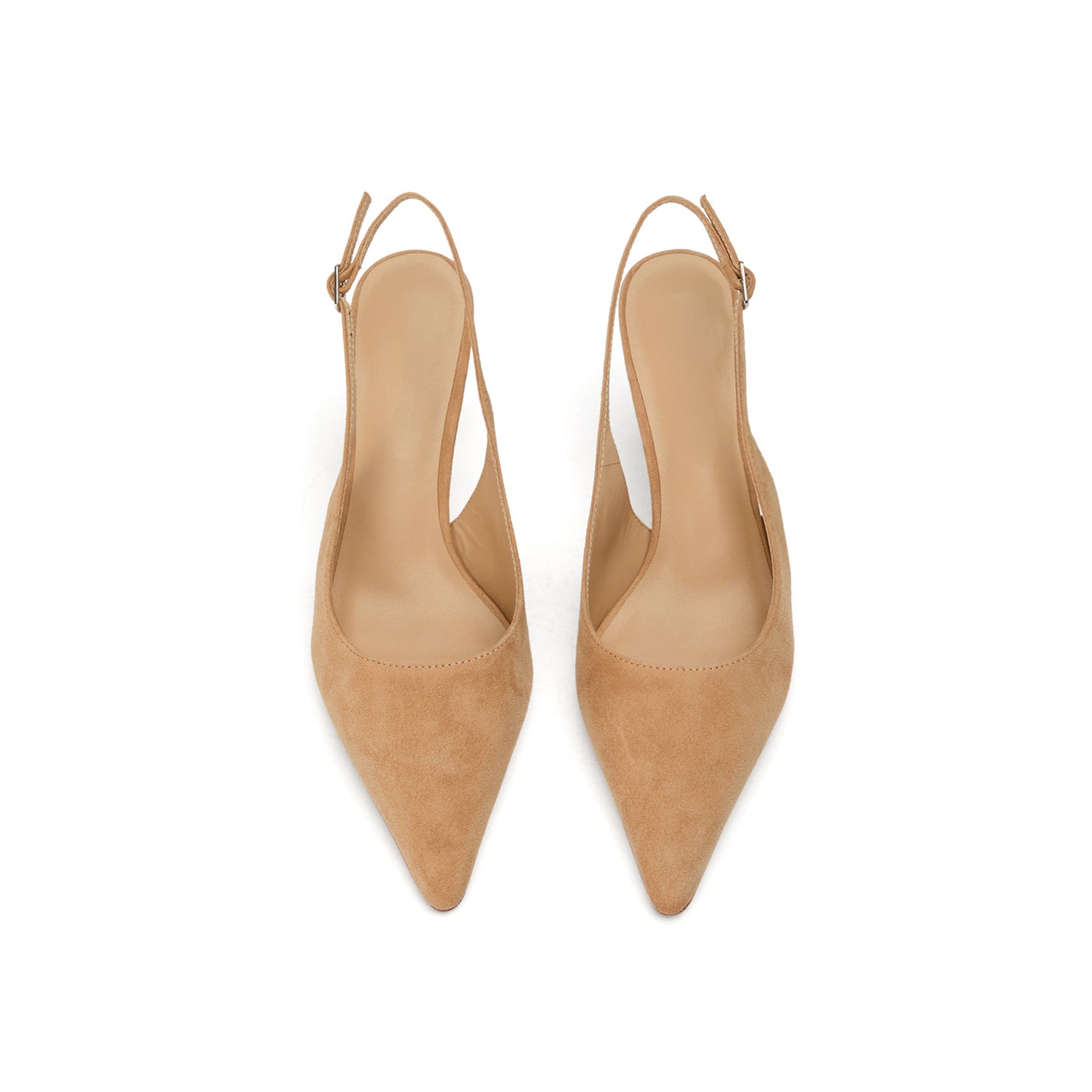 Tan Faux Suede Pointed-Toe Slingback Pumps High Heels