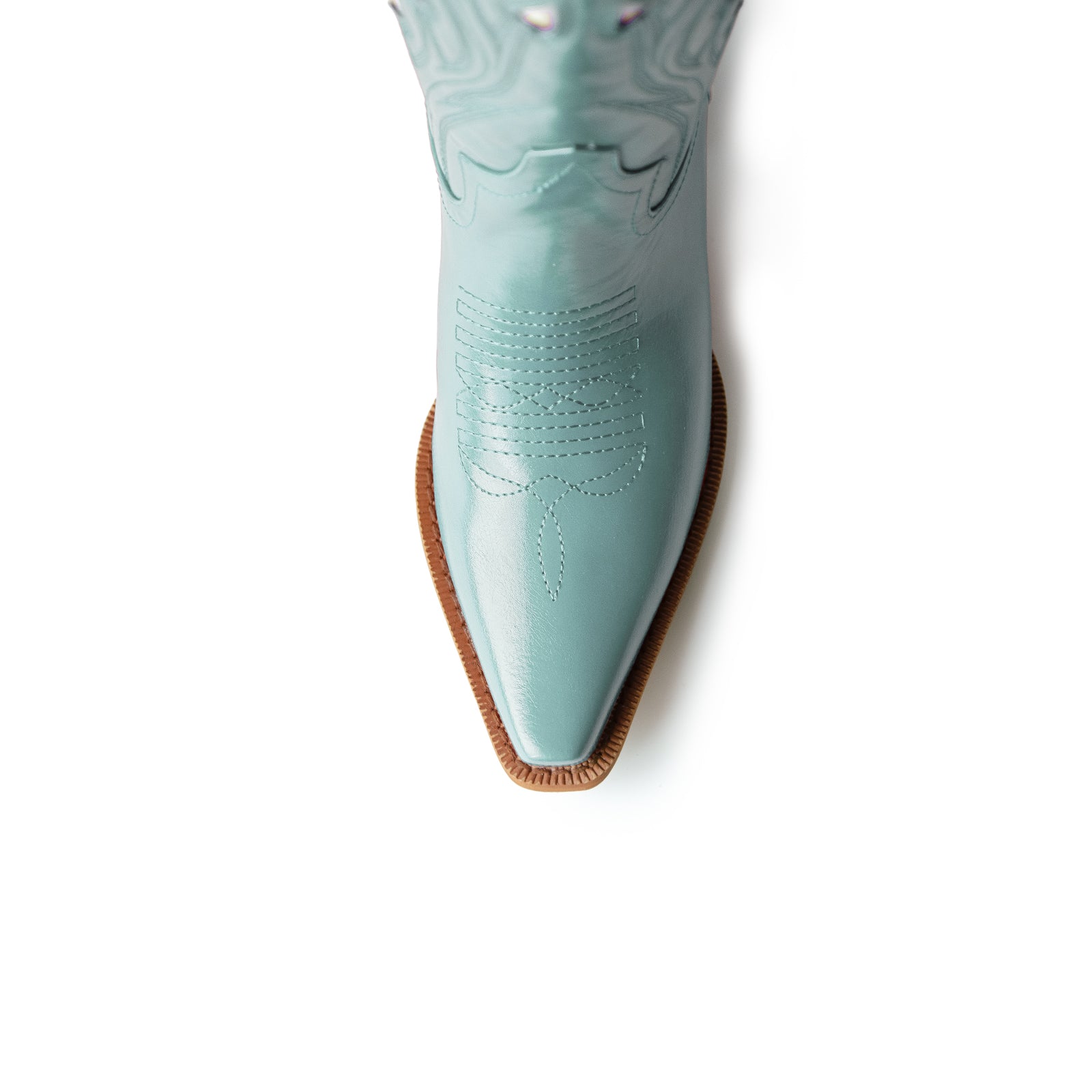 Light Blue Snip-Toe Embroidery White Heart Inlays Mid Calf Cowgirl Boots.