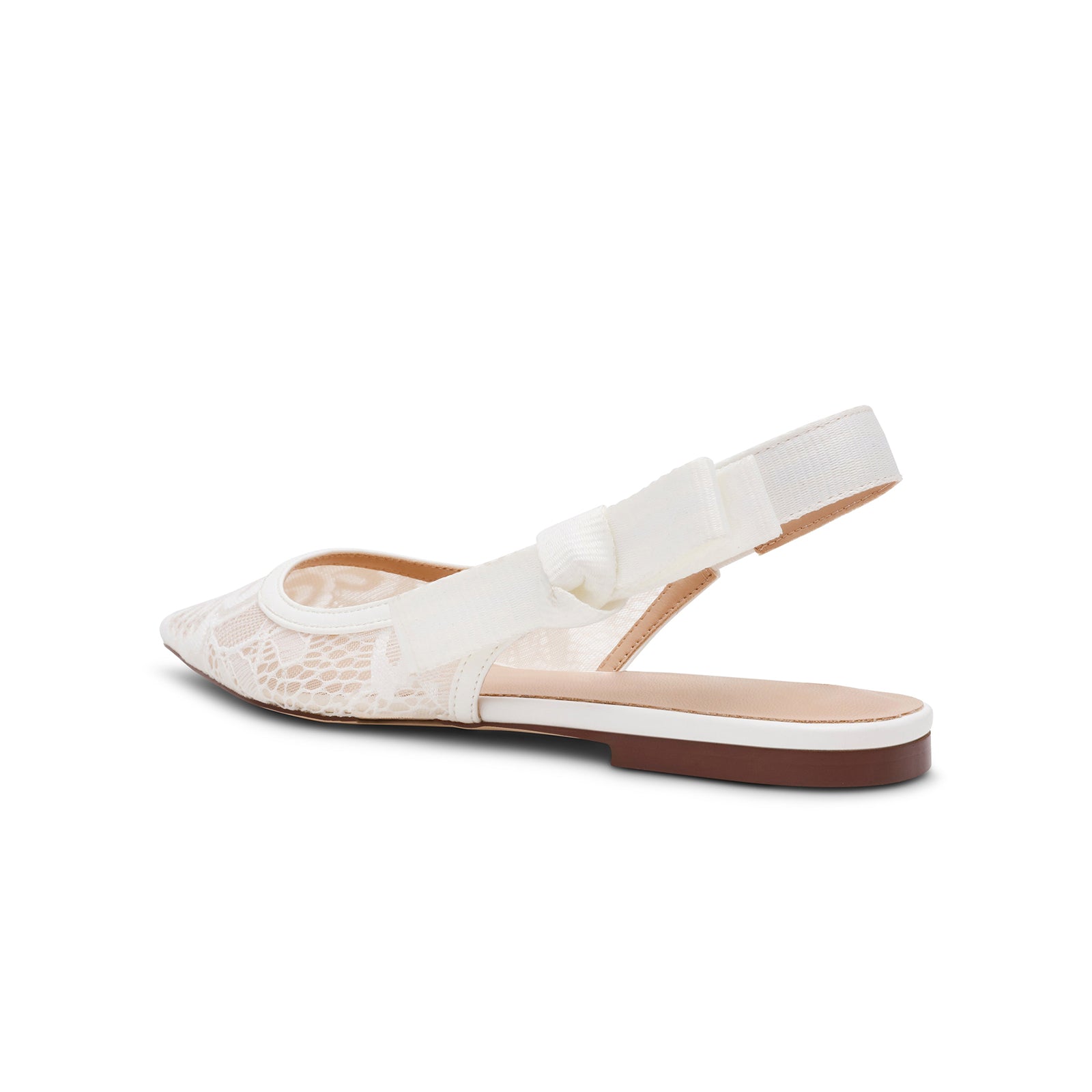 White Lace Mesh Pointed-Toe Slingback With Bow Flats.