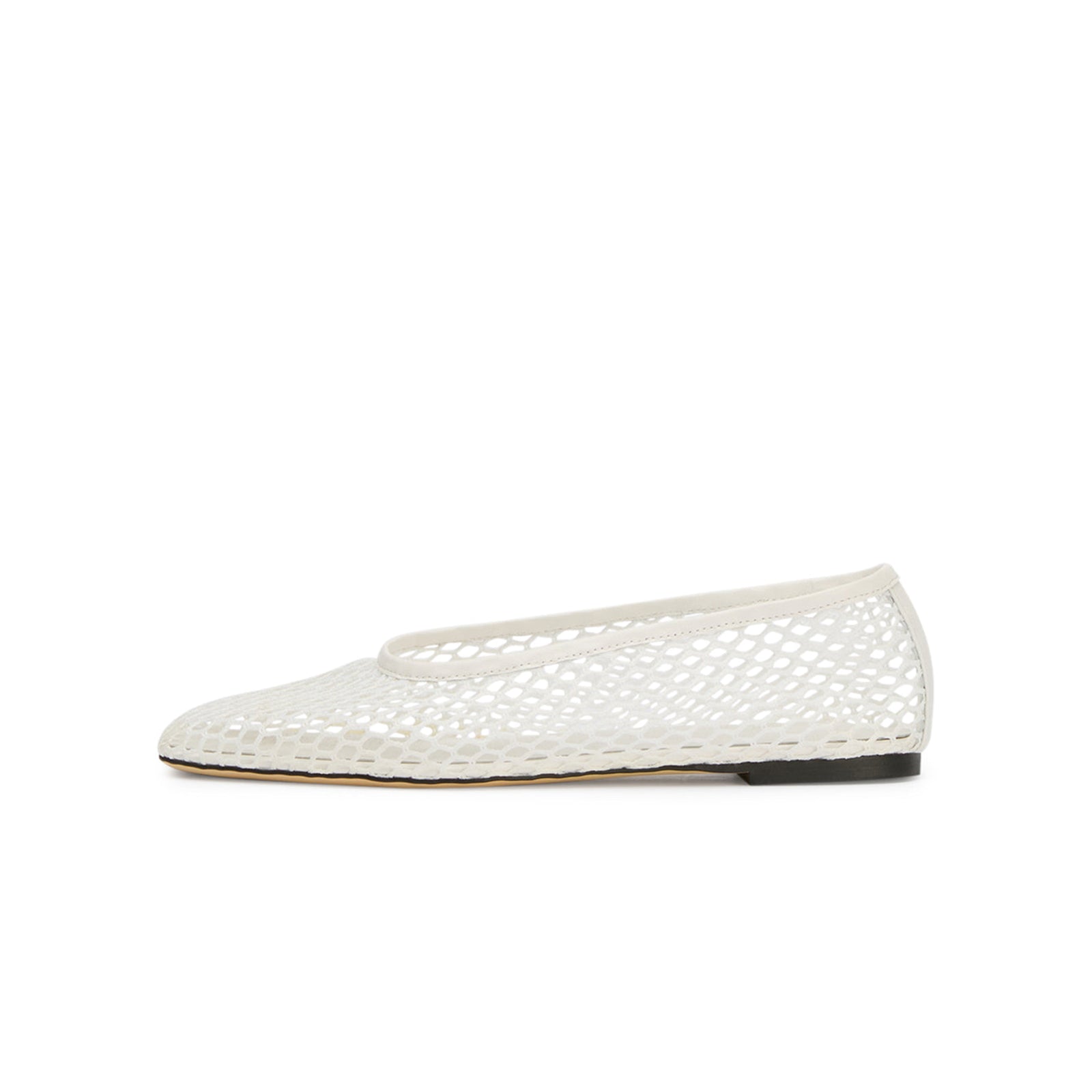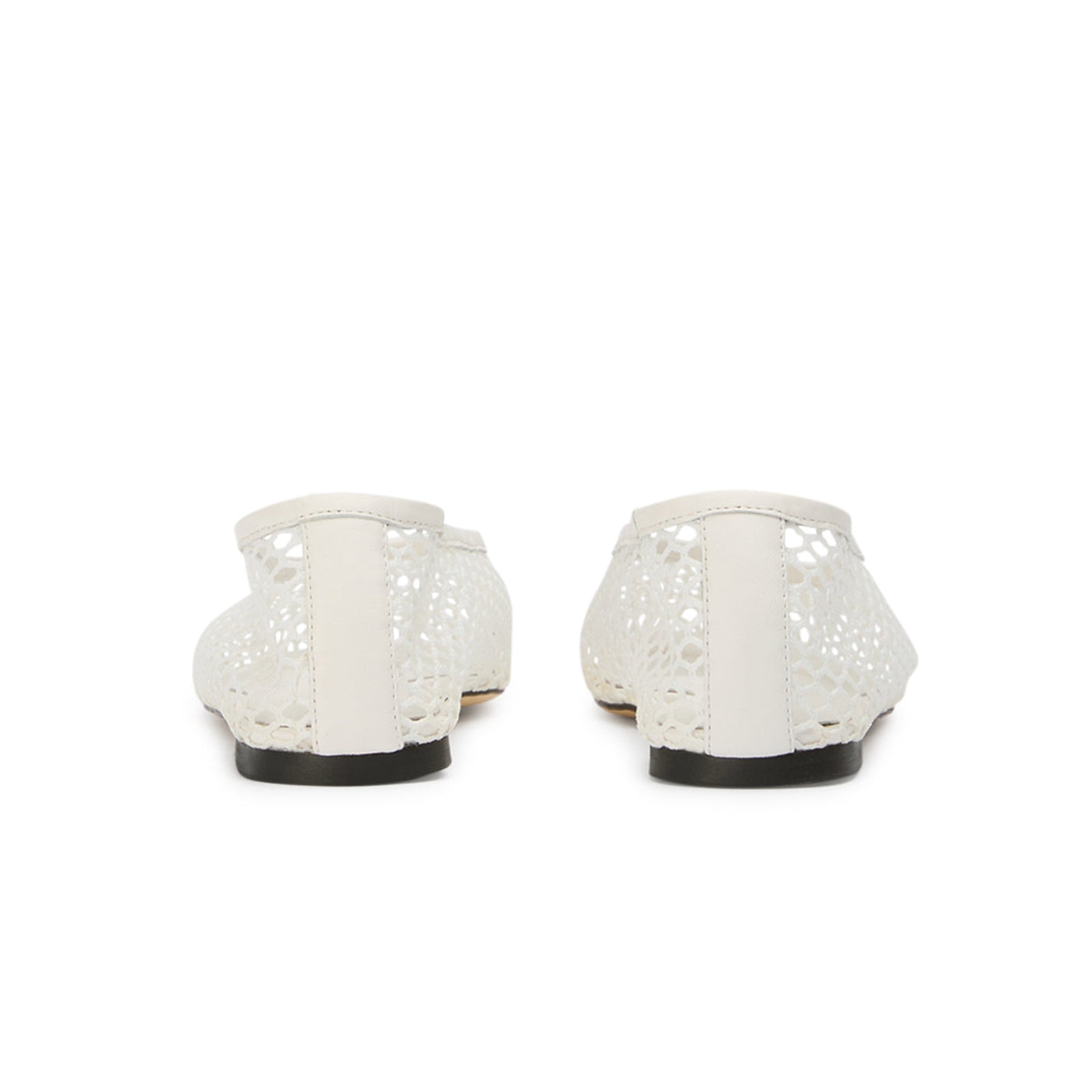 White Mesh Vegan Leather Square-Toe Ballet Flats.