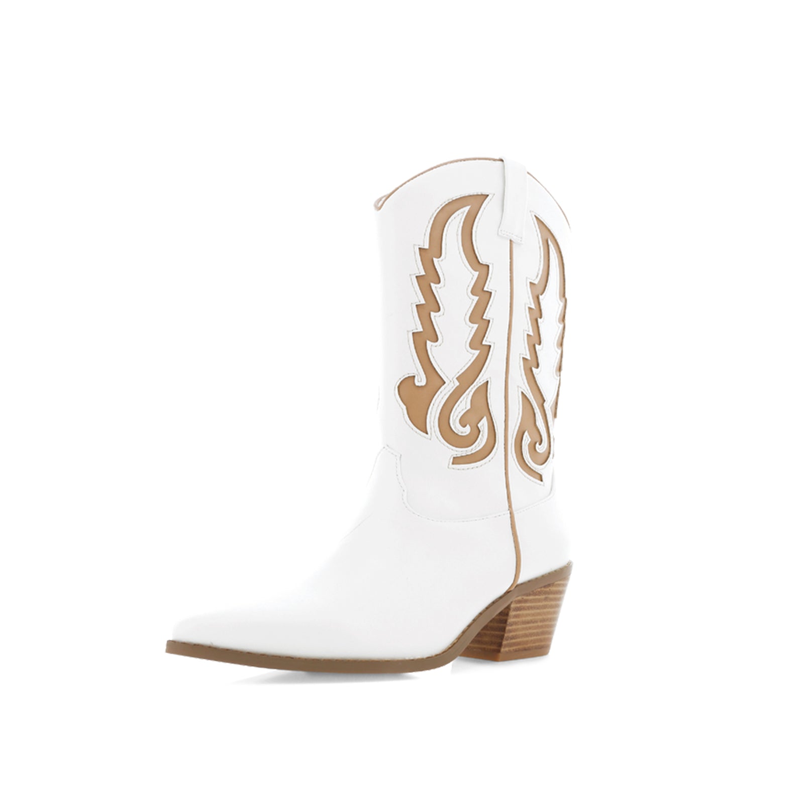 White Snip-Toe Chic Inlay Mid Calf Cowgirl Boots