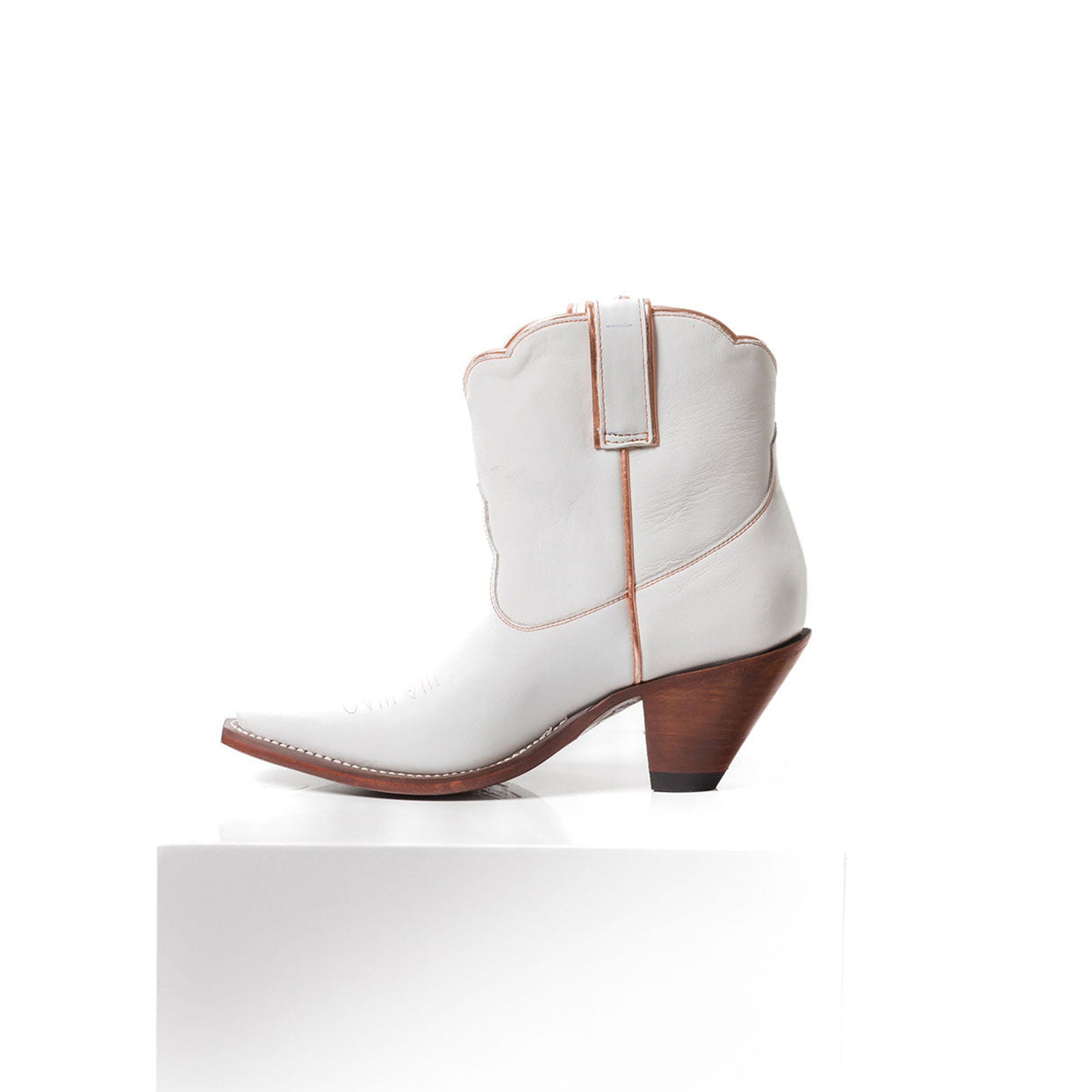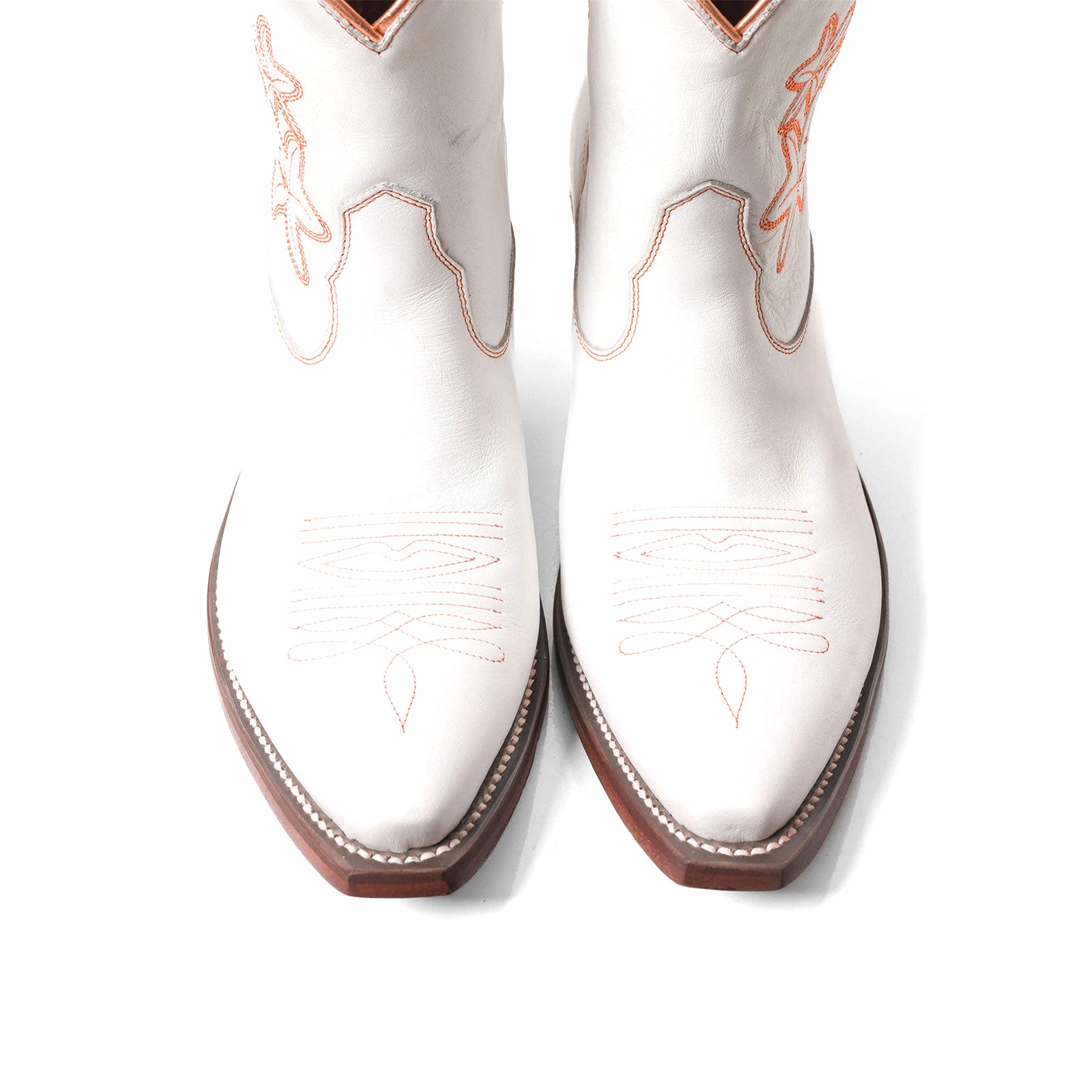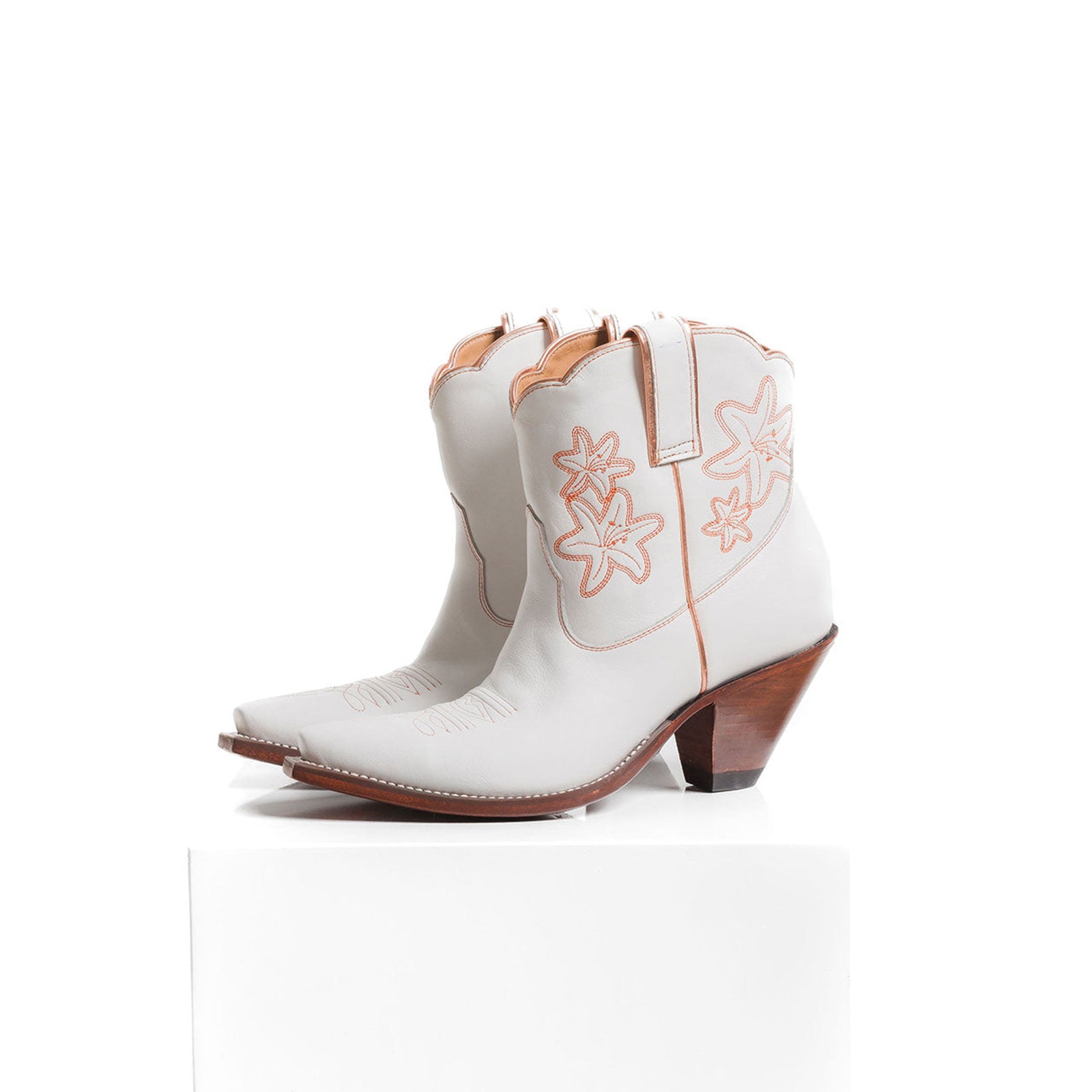 White Snip-Toe Flowers Embroidery Ankle Cowgirl Boots.