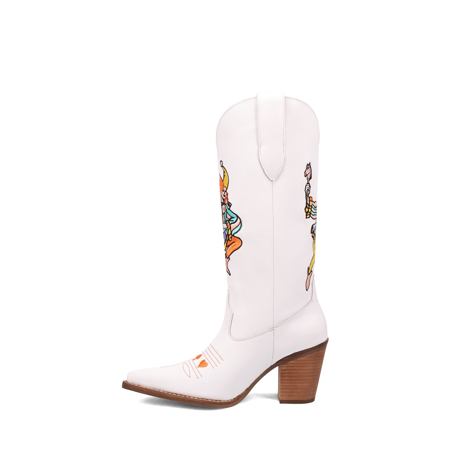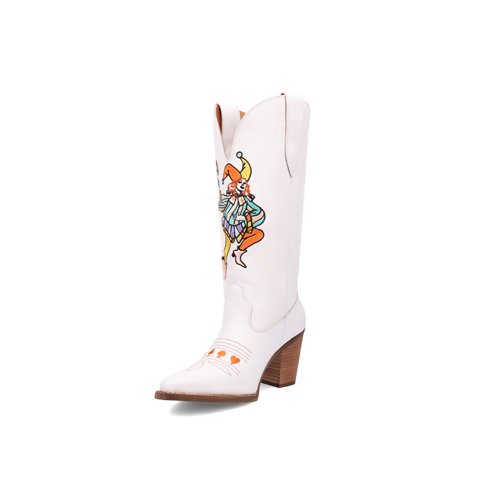 White Snip-Toe Joker Embroidery Mid Calf Cowgirl Boots