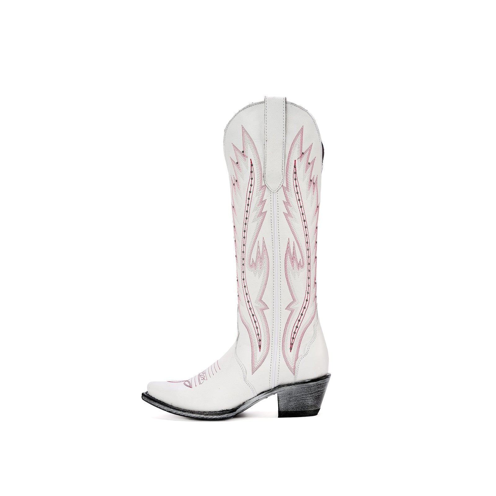White Snip-Toe Studs And Embroidery Wide Calf Knee High Cowgirl Boots