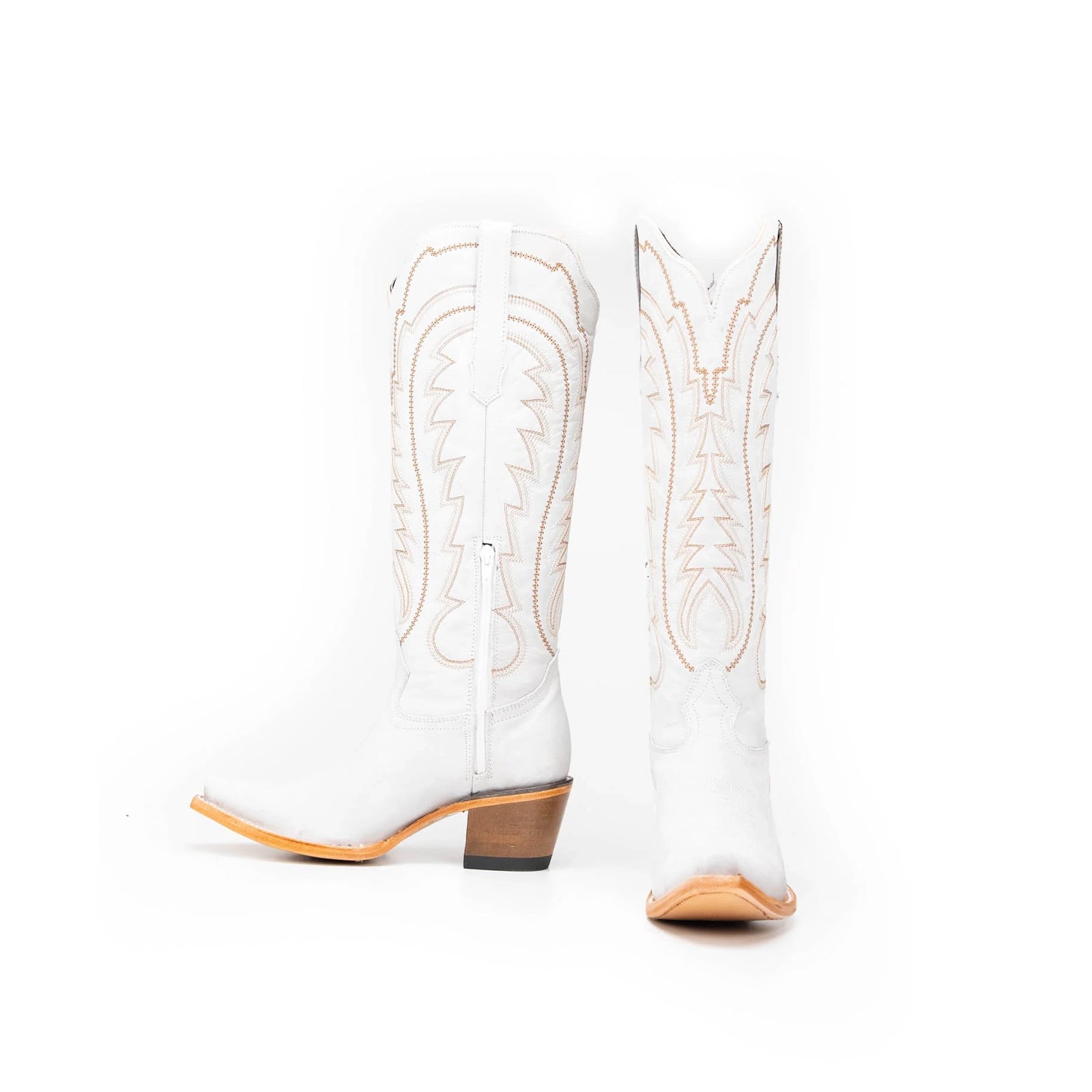 Clean and classic, these boots highlight subtle thread stitching on a fresh canvas, delivering timeless Western style with modern simplicity.