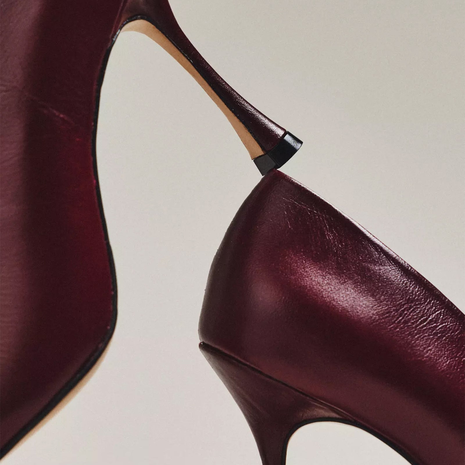 Wine Red Pointed-Toe Classic Backless High Heels.