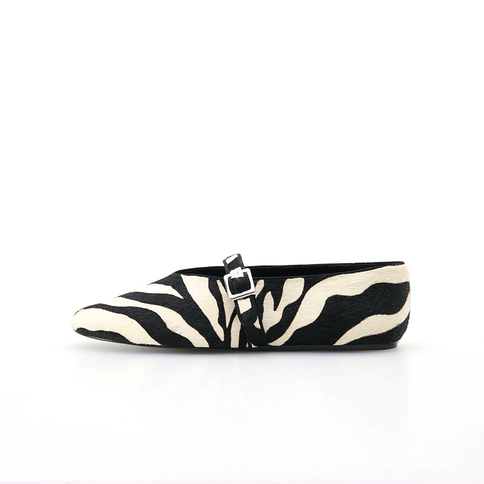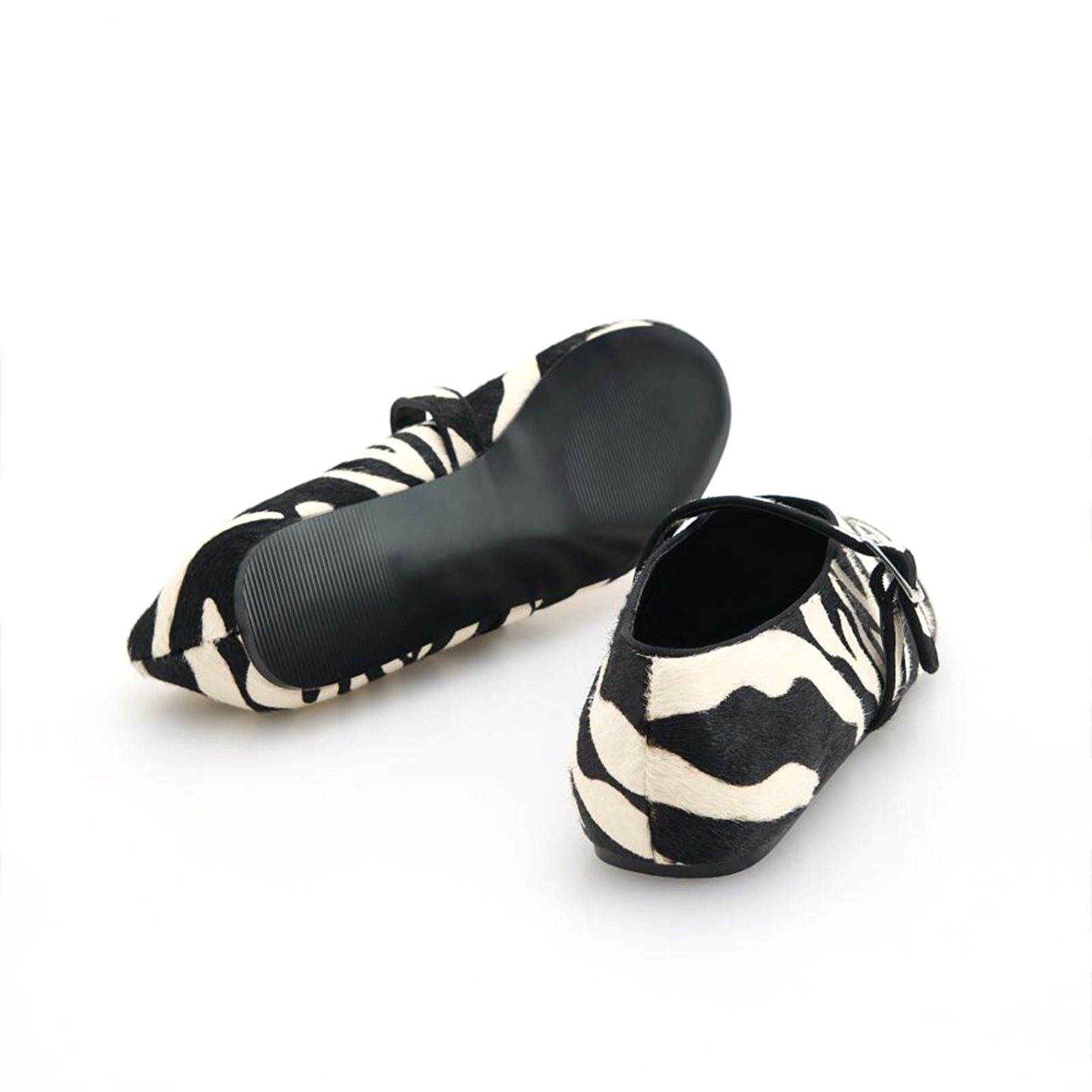 Zebra Print Pony Hair Round-Toe Bridge Strap Ballet Flats.