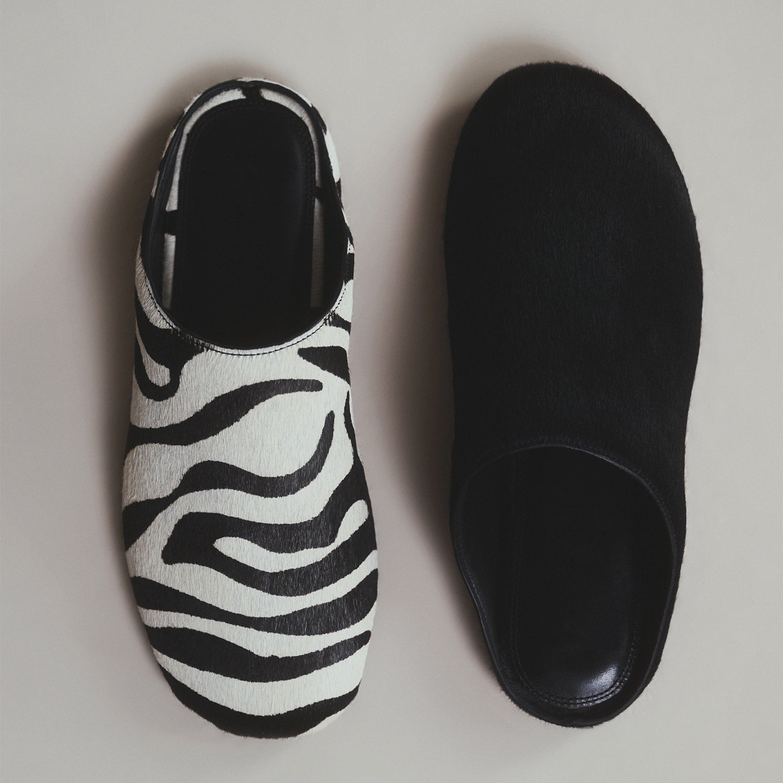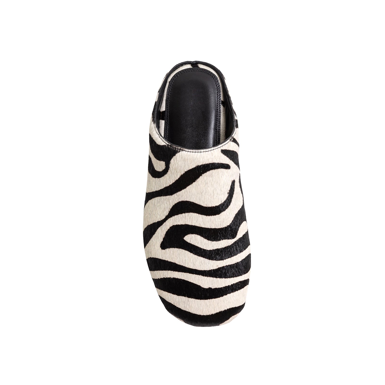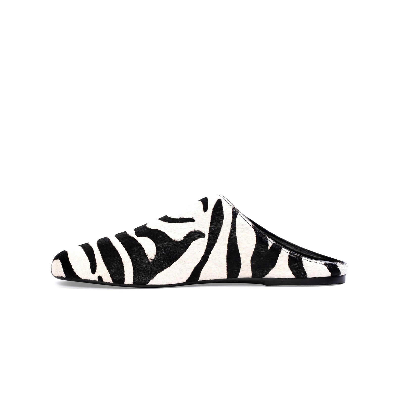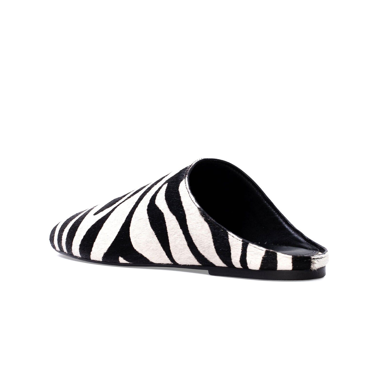 Zebra Print Pony Hair Round-Toe Slip-on Backless Ballet Flats.